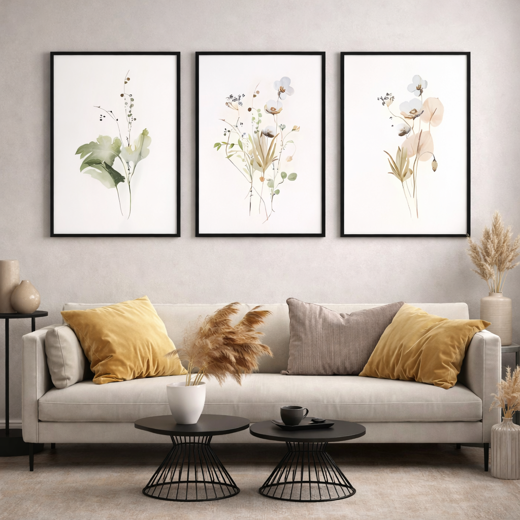 Set x3 Cuadros Decorativos Flores, Acuarelas