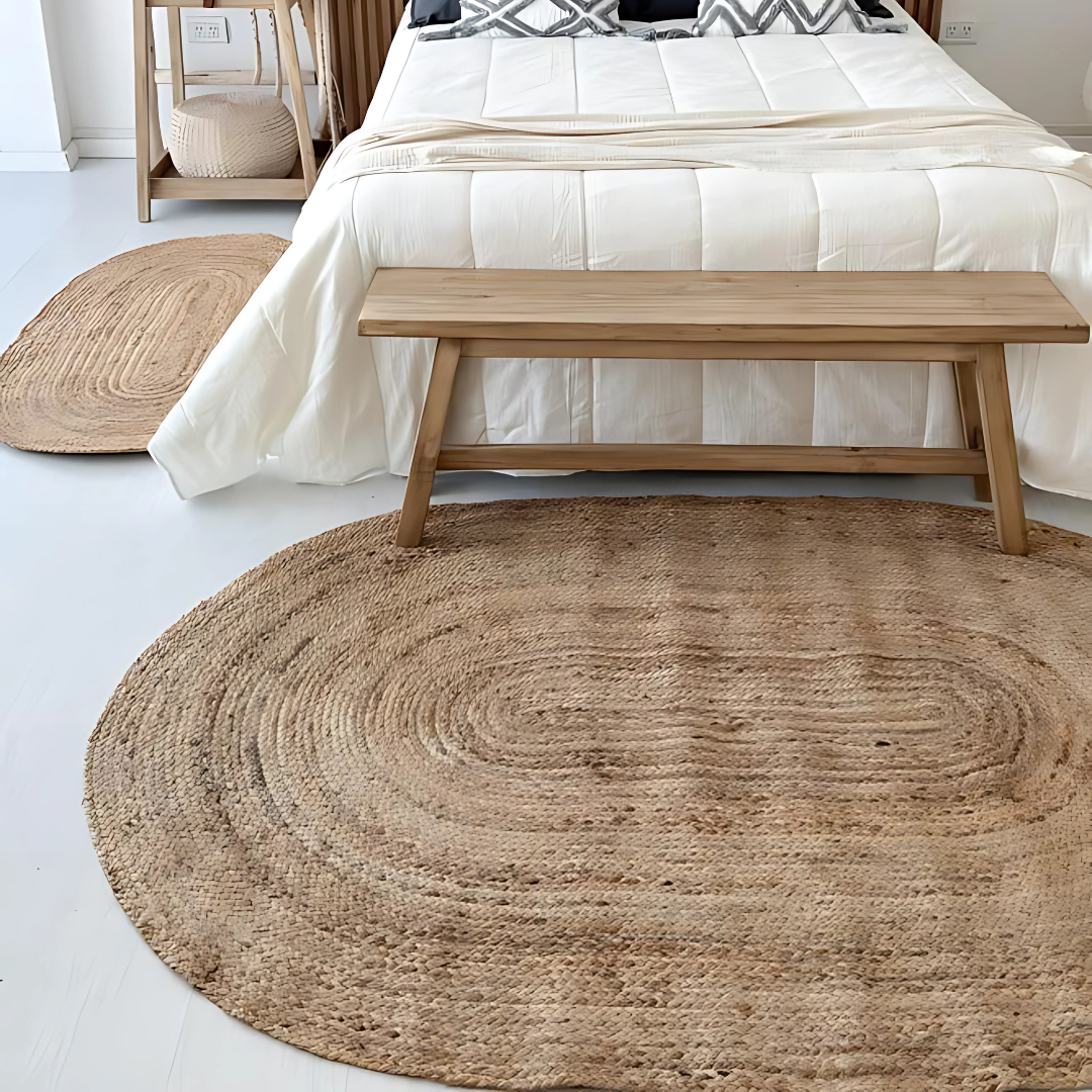 Nuestra alfombra AGRA es perfecta para sumar un toque cálido y natural a tus ambientes, con un diseño ovalado que se adapta genial a livings, dormitorios, entradas o cualquier rincón especial. Hecha en yute 100% natural, con textura artesanal y mucho estilo.