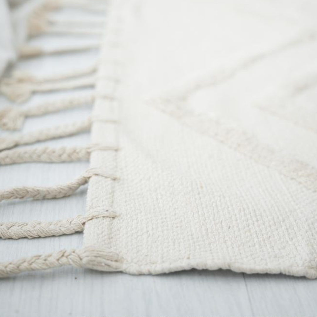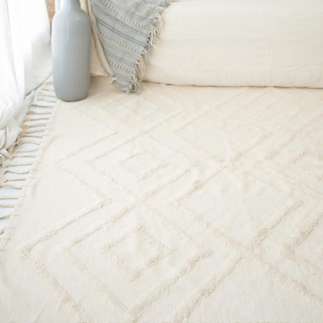 Nuestra BAMERA está confeccionada en 100% algodón, perfecta para sumar calidez y textura a tus espacios. Liviana, lavable y delicadamente tejida, es una opción ideal para quienes buscan belleza simple con materiales nobles.
