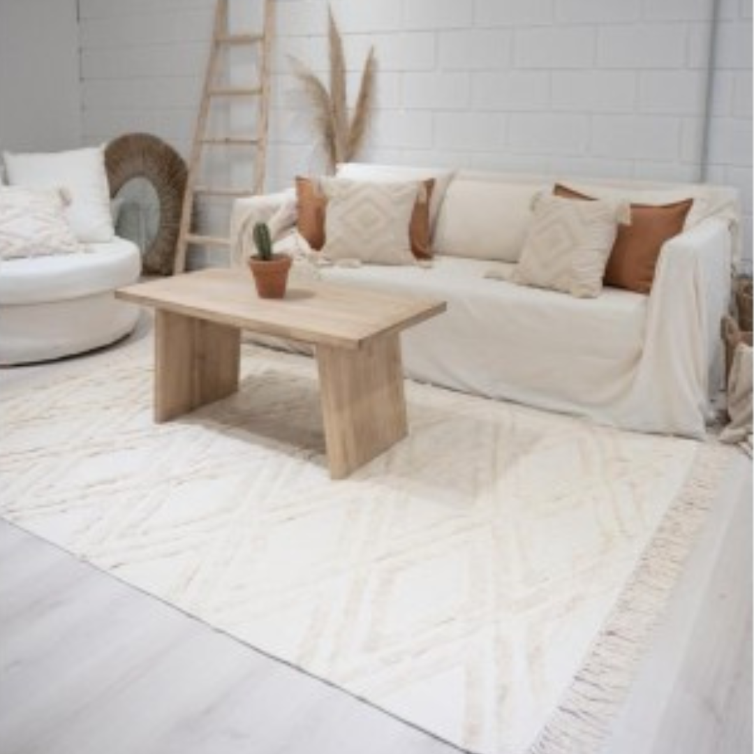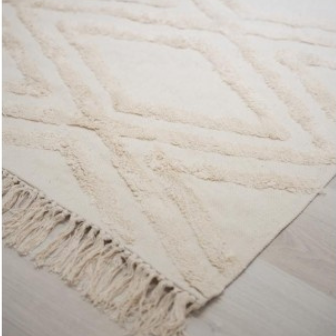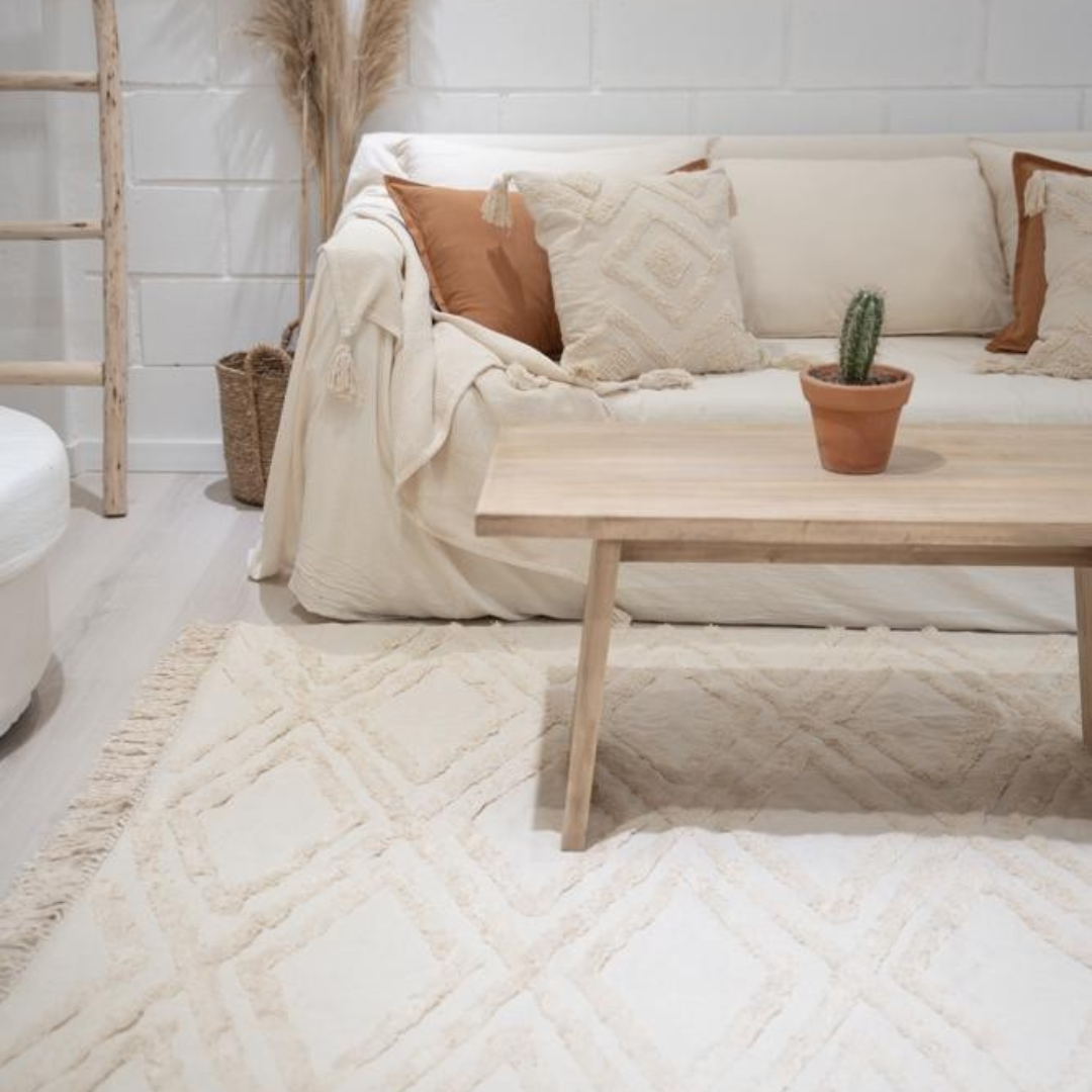 Nuestra alfombra JIMA es perfecta para quienes buscan una pieza suave y versátil. Hecha con 100% algodón importado de India, esta alfombra se adapta a cualquier rincón de tu hogar, aportando calidez y confort. Su practicidad es inigualable, ya que es lavable en lavarropas, facilitando su mantenimiento y limpieza.