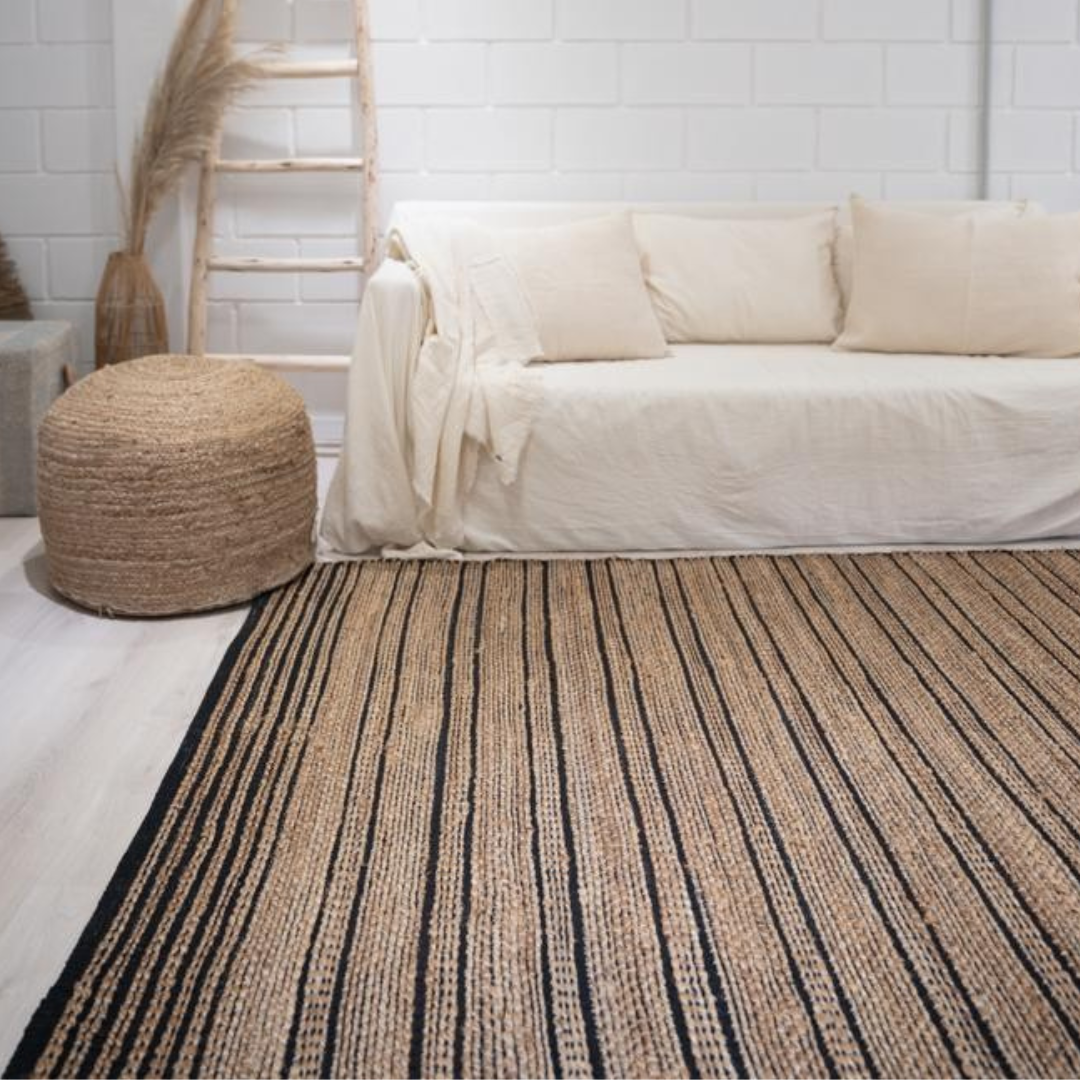Nuestra alfombra SURIA es la pieza perfecta para quienes buscan una combinación de texturas y un estilo relajado y natural. Hecha con una mezcla de 60% yute natural y 40% algodón, esta alfombra importada de India cuenta con un trenzado tipo artesanal que le da una suavidad y un look único. Es ideal para sumar un toque cálido y acogedor a cualquier ambiente.