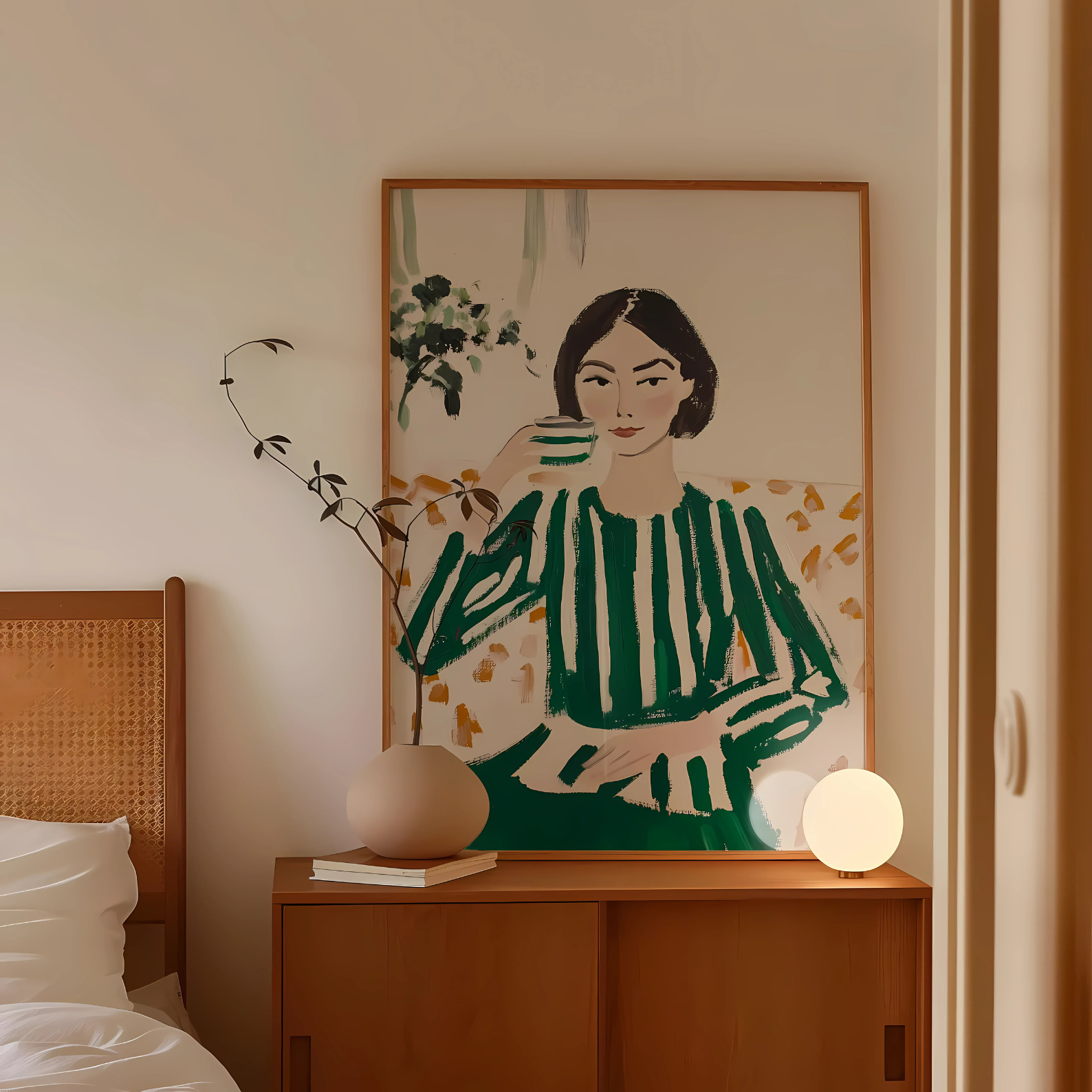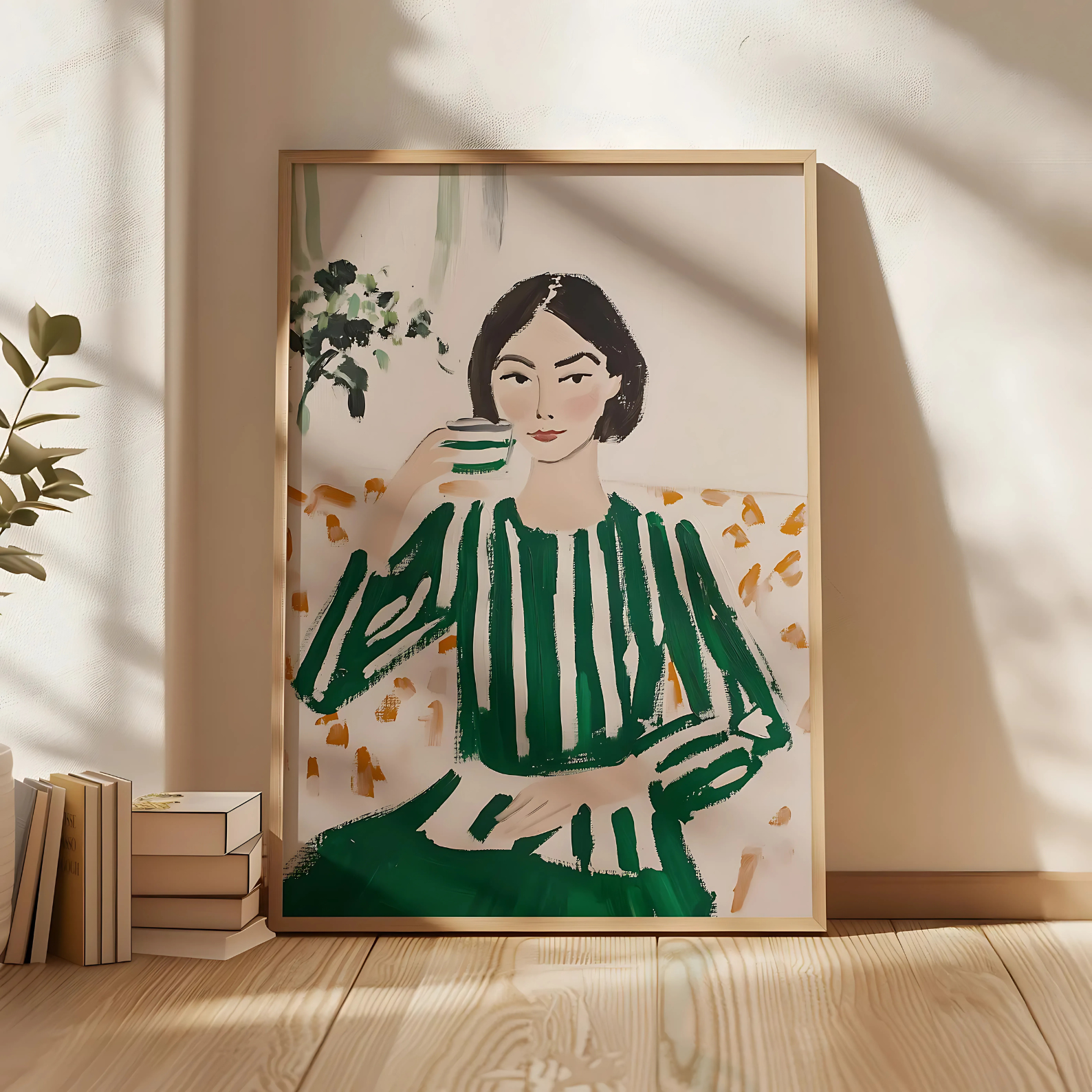Cuadro Decorativo Ilustración Mujer Tomando Te