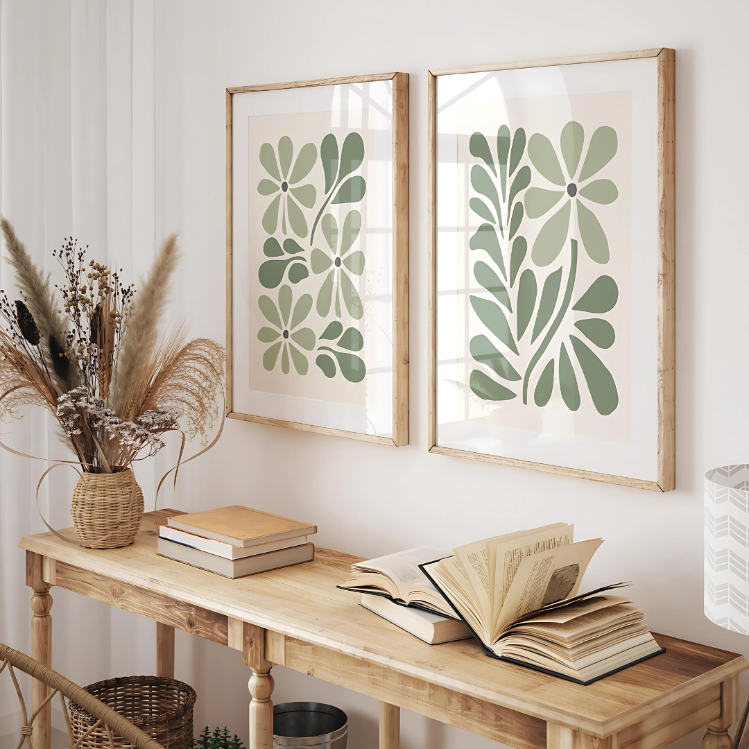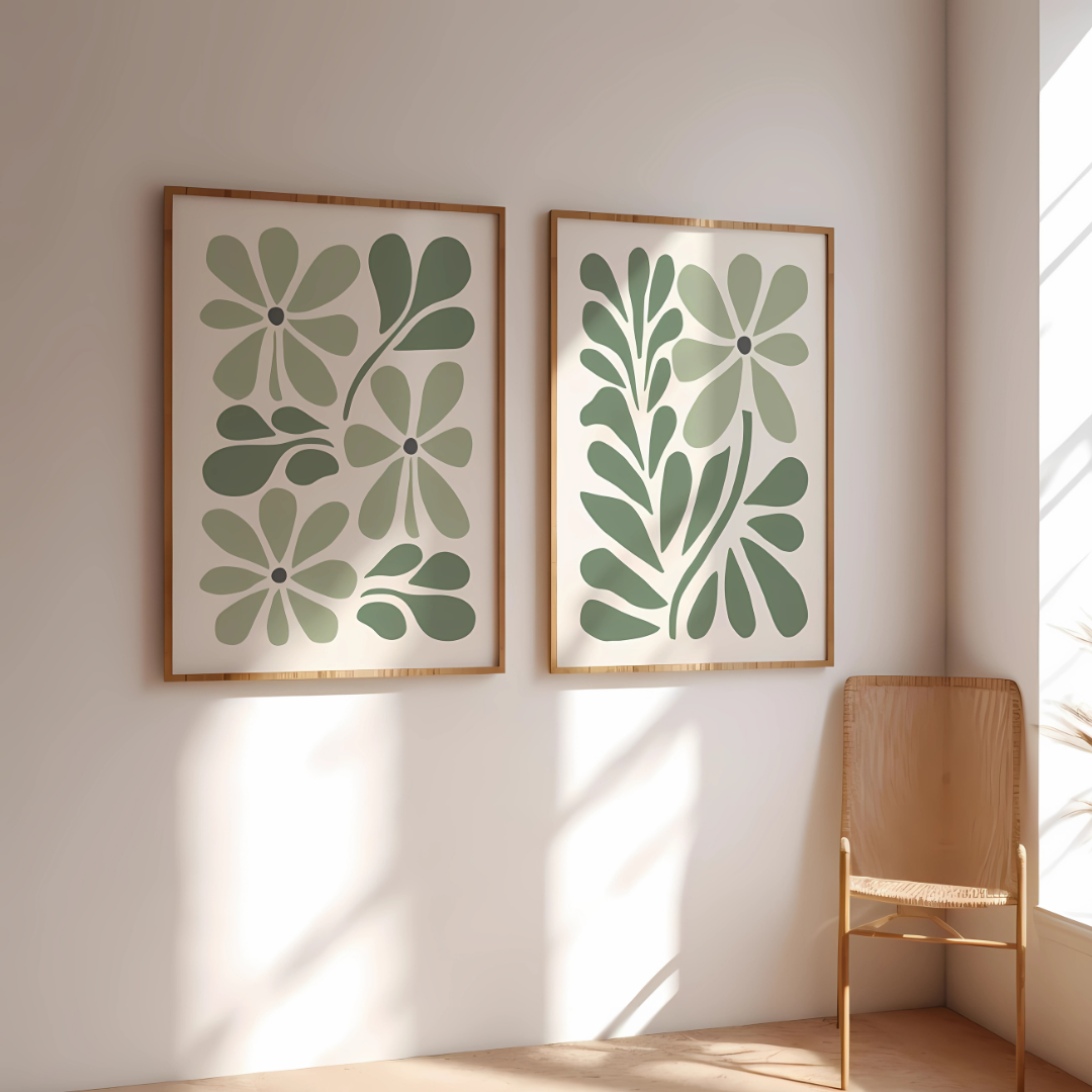 Set x2 Cuadros Decorativos Botanicos Vegetacion Verdes