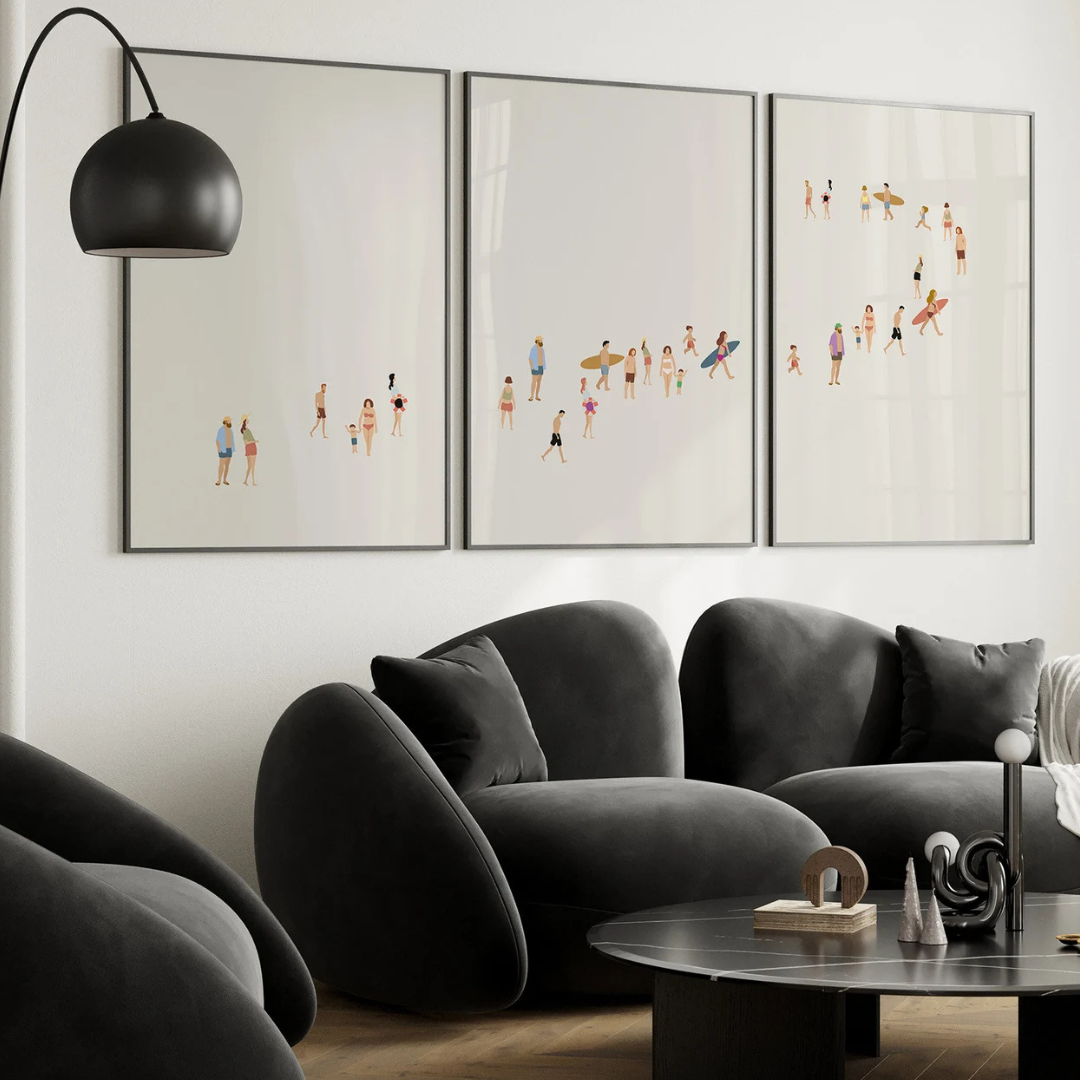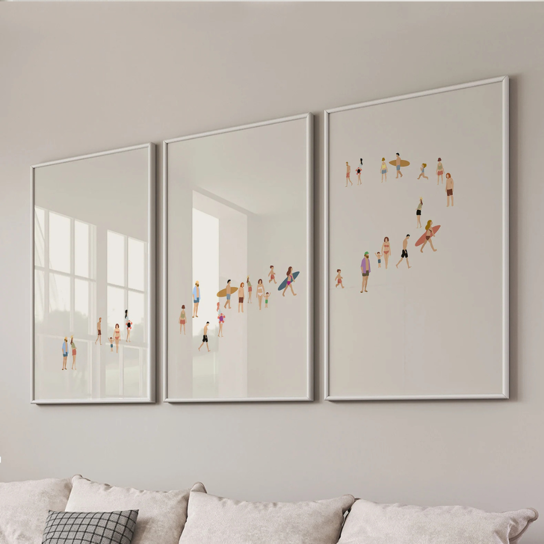 Set x3 Cuadros Decorativos minimalistas, arte mural de playa, arte mural neutro