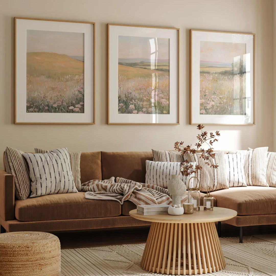 Set x3 Cuadros Decorativos neutras de paisaje floral