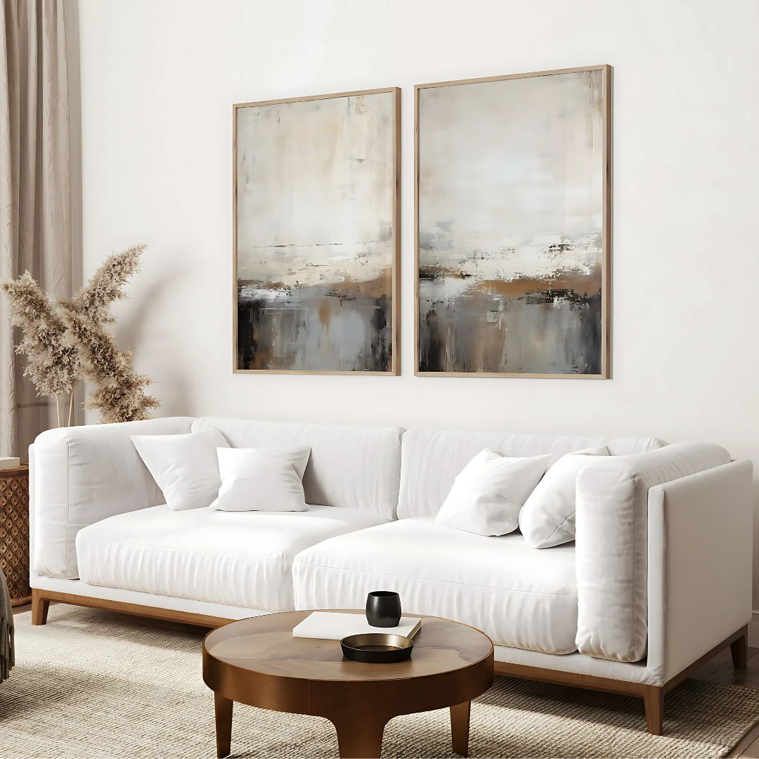 Set x2 Cuadros Decorativos Abstractos Tono De Grises Y Marrones Difuminados