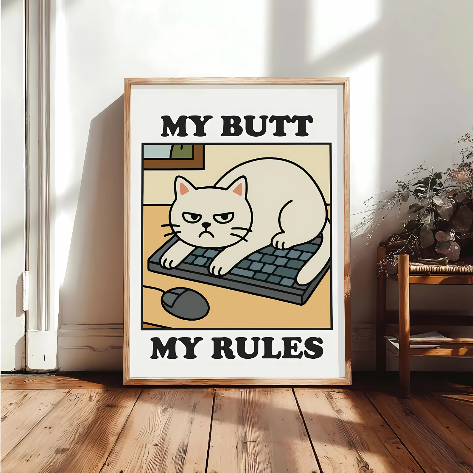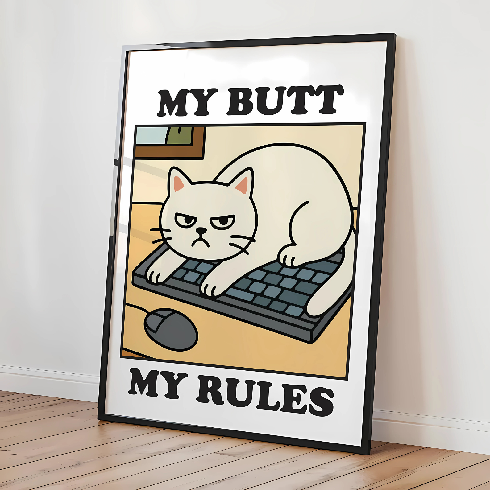 Cuadro Decorativo Gato Blanco My Butt My Rules