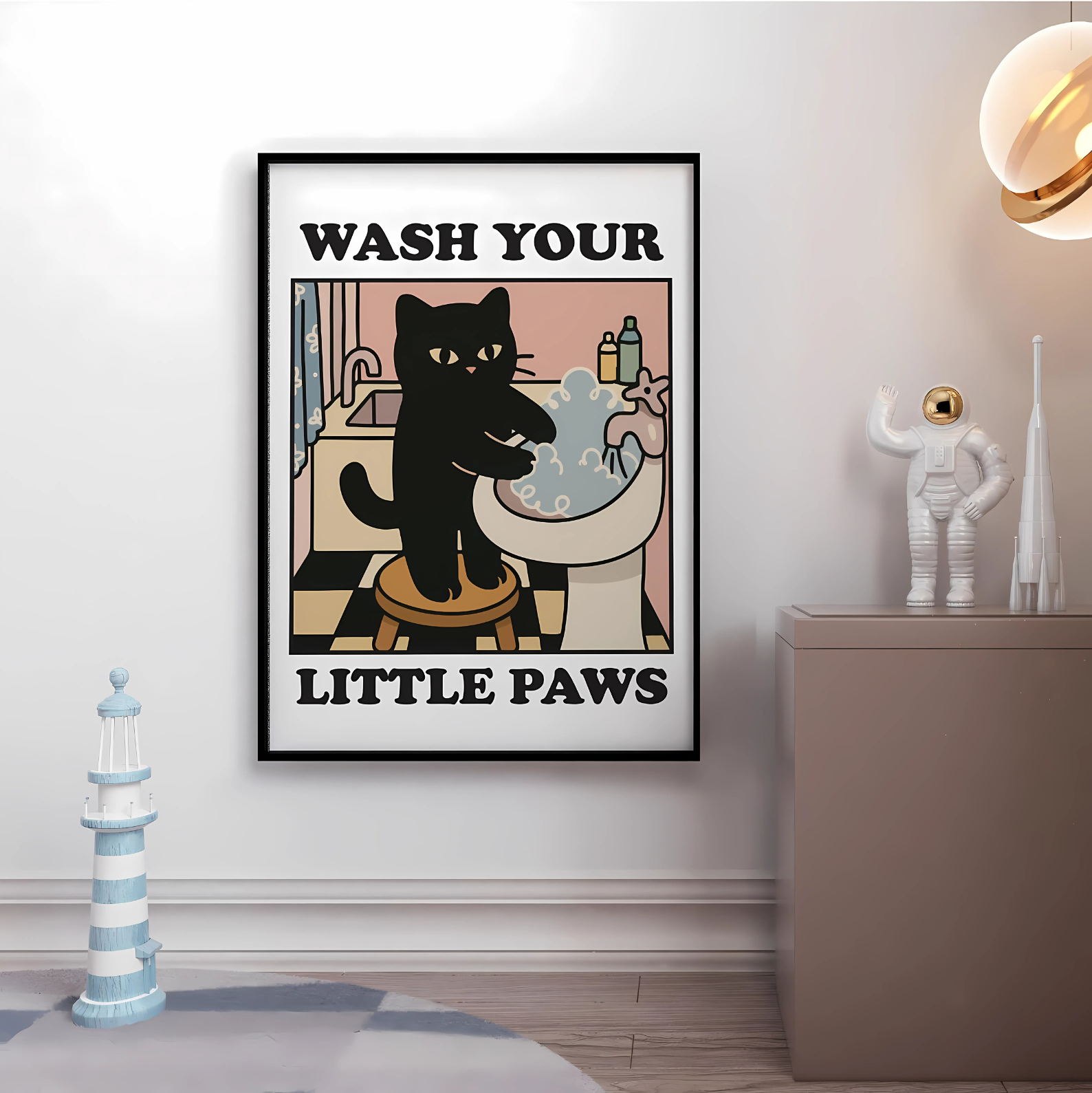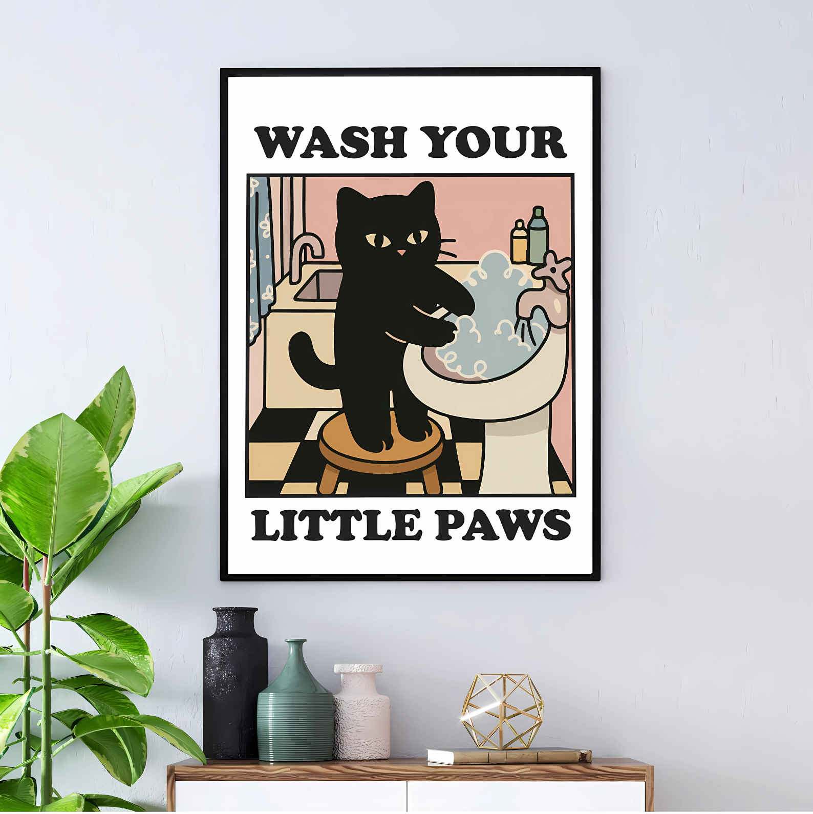 Cuadro Decorativo Gato Negro Wash Your Littel Pawns