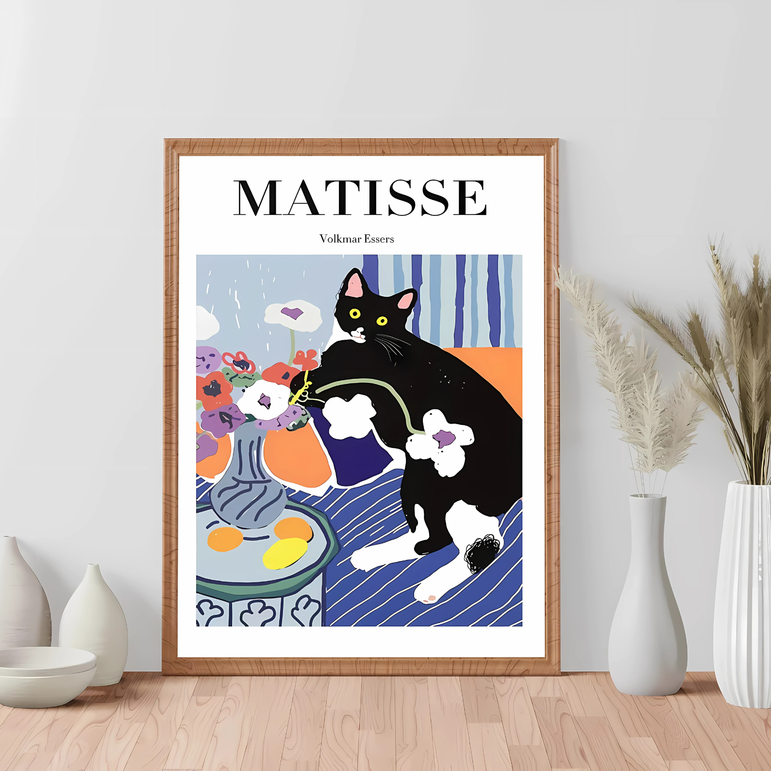 Cuadro Decorativo Gato Negro Y Blanco Acostado Matisse