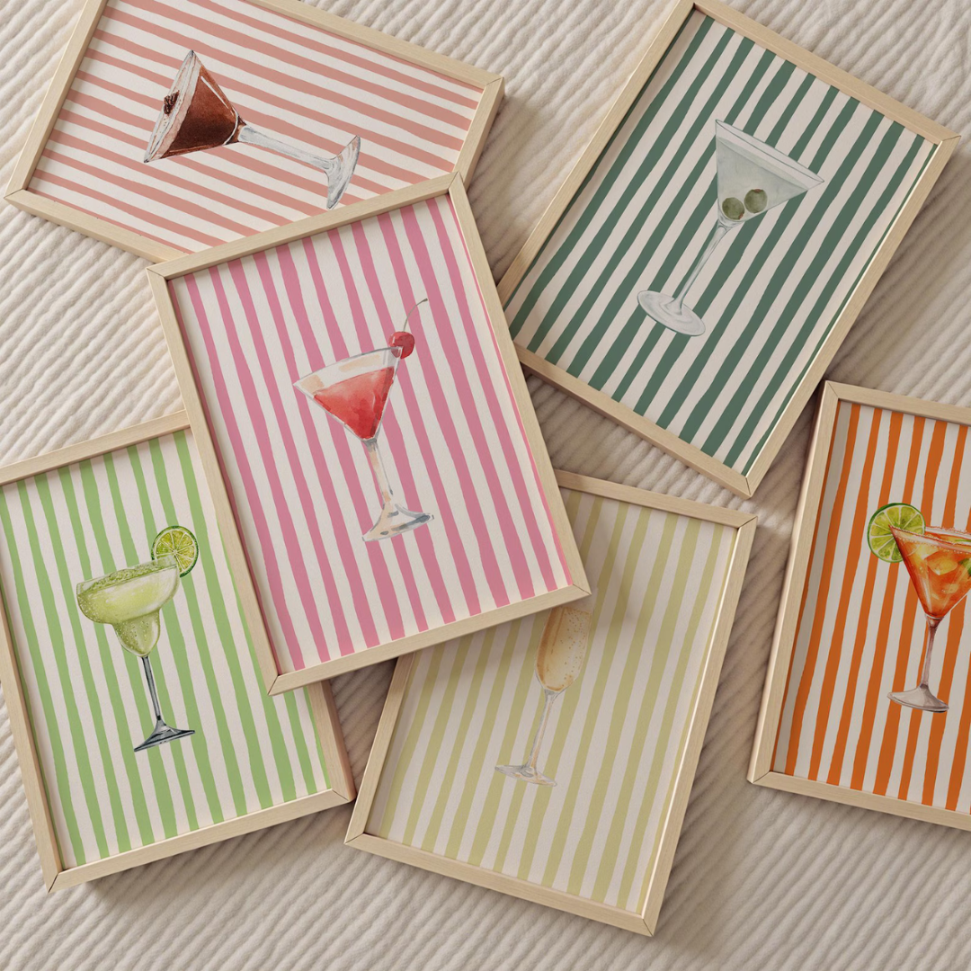Cuadro Decorativo Cóctel Rayas Rosa Pastel