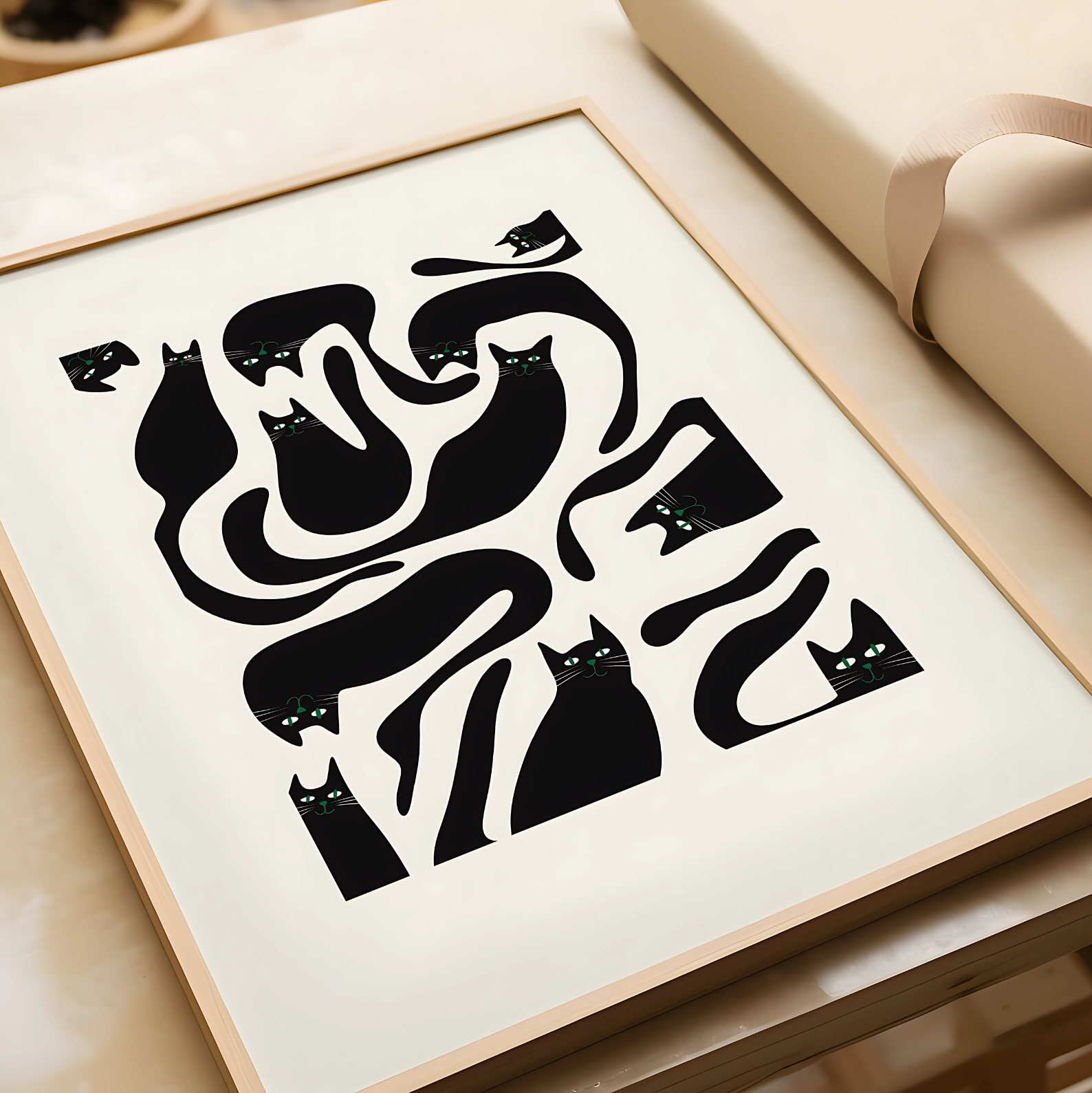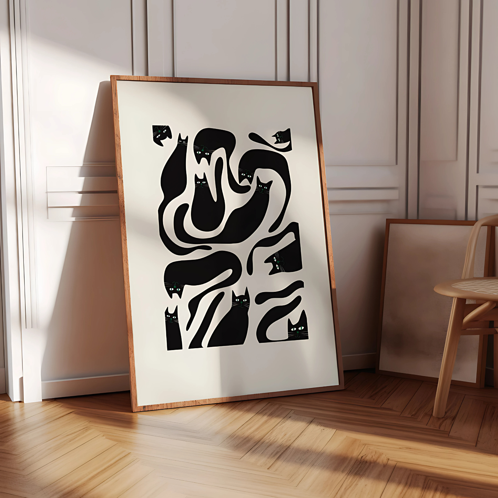 Cuadro Decorativo Gatos Negros Derretidos Mezclándose