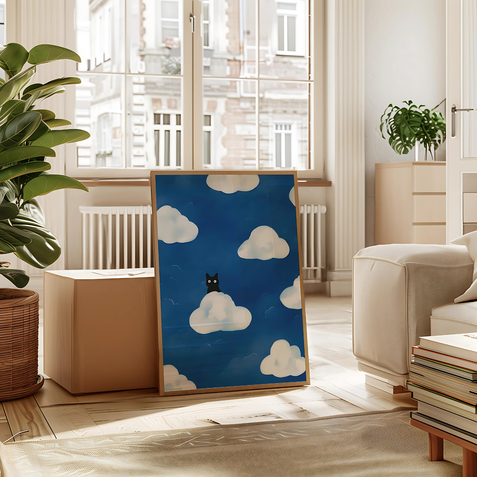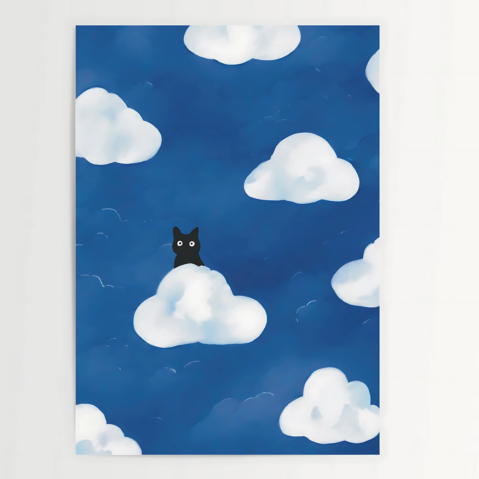 Cuadro Decorativo Gato Sobre Una Nube Fondo Azul