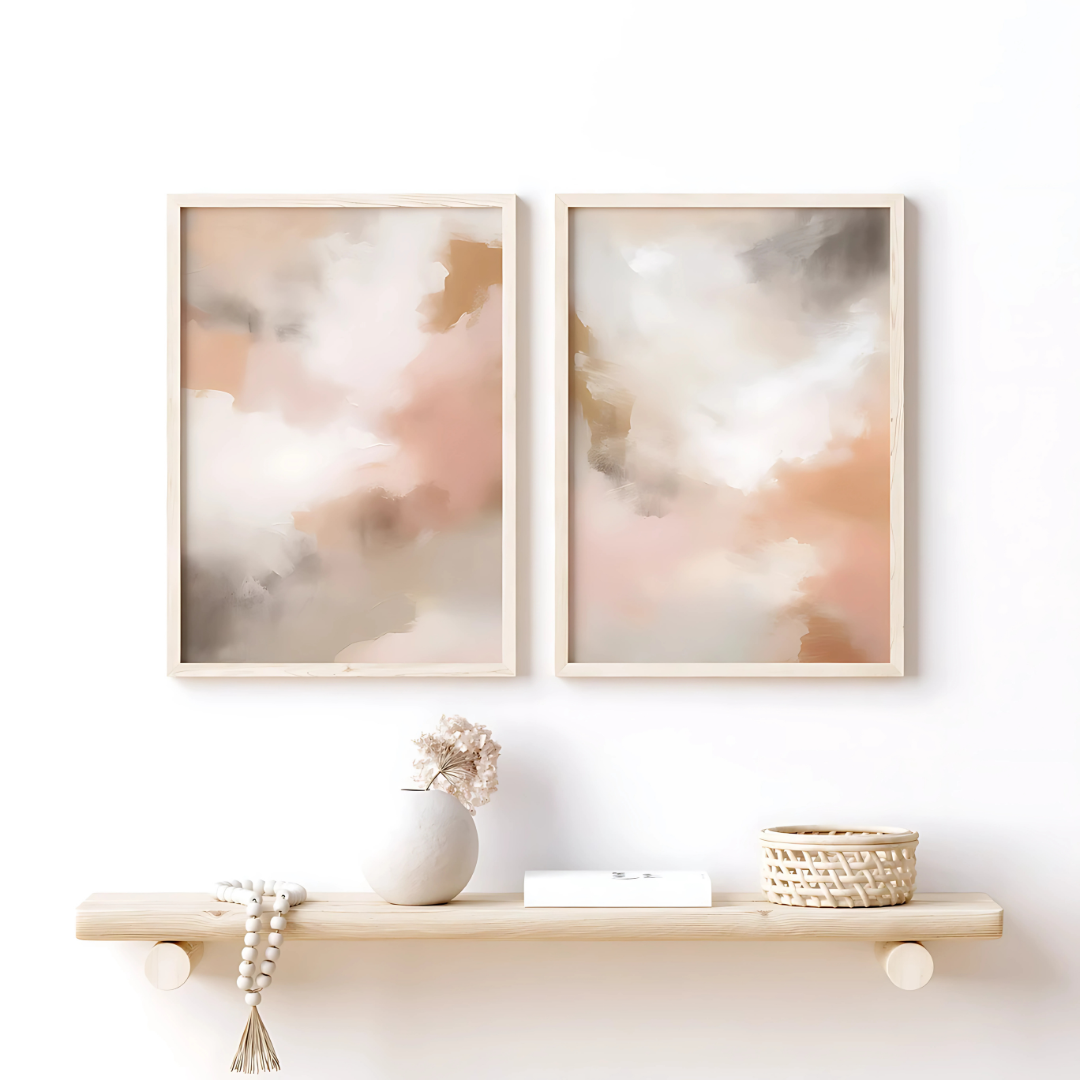 Setx2 Cuadros Decorativos Abstracto Difuminación De Grises, Dorados Y Blancos.