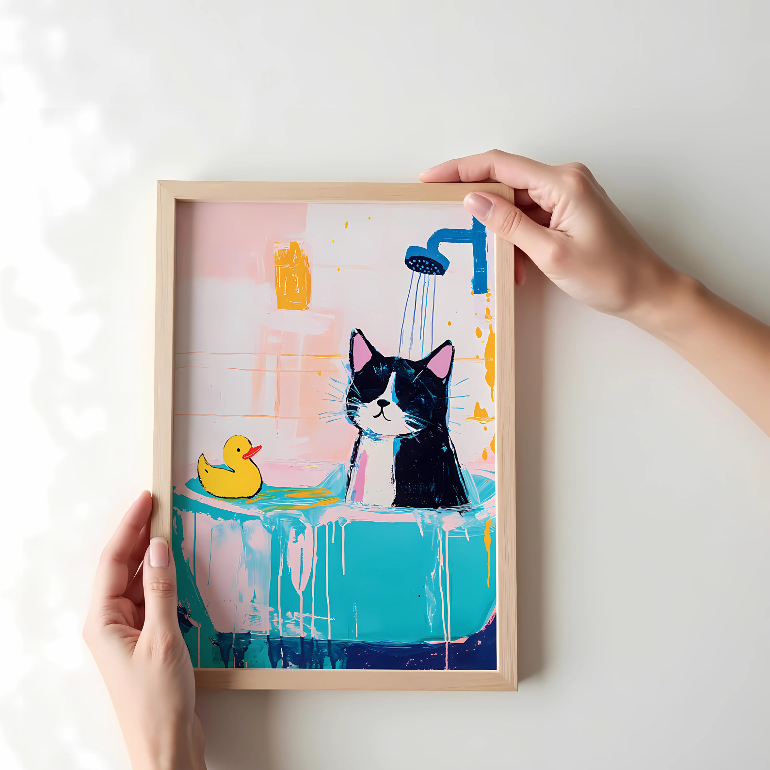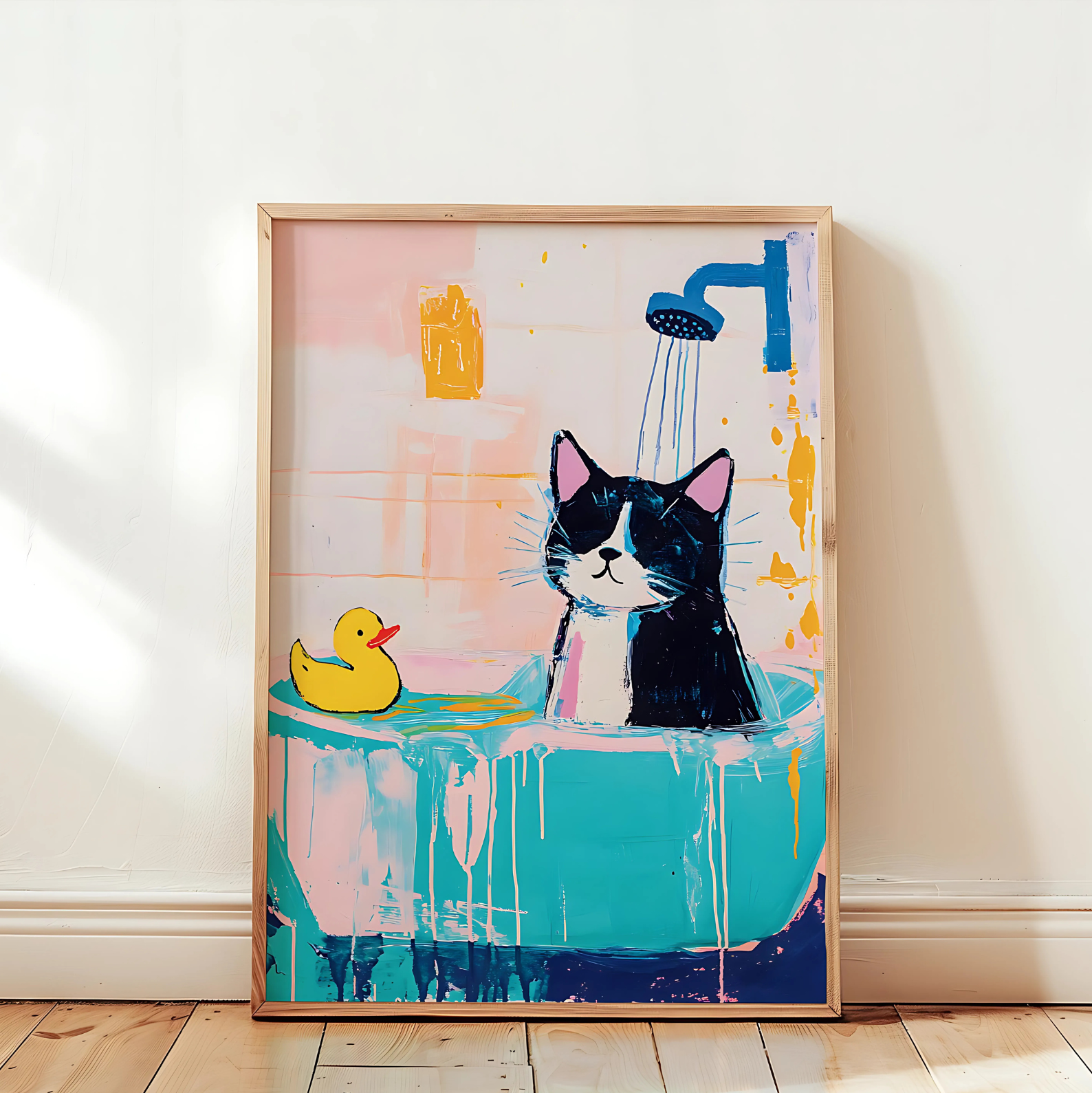 Cuadro Decorativo Gato Negro Baño Patito Amarillo
