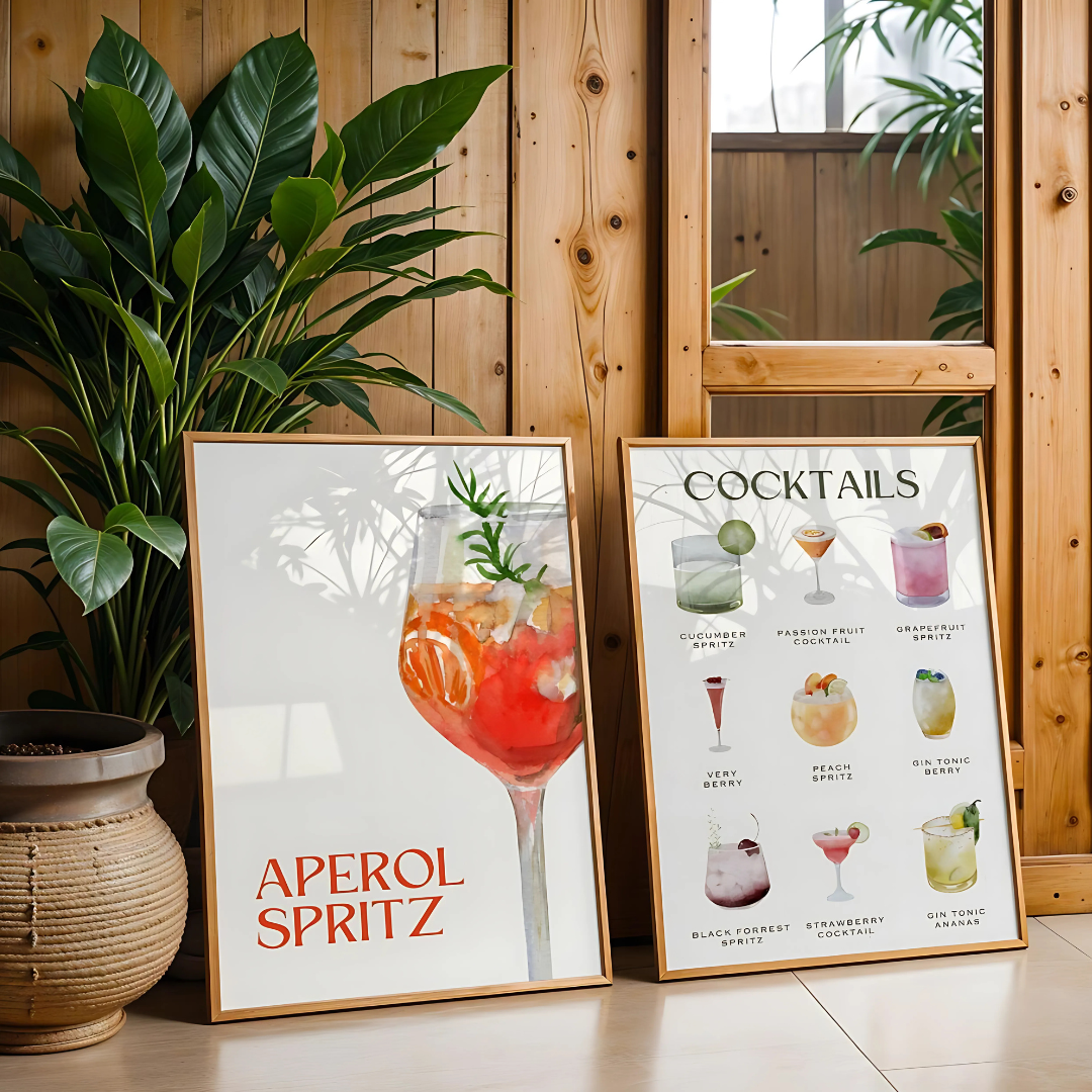 Set x2 Cuadros Decorativo Ilustraciones de bebidas con estilo II