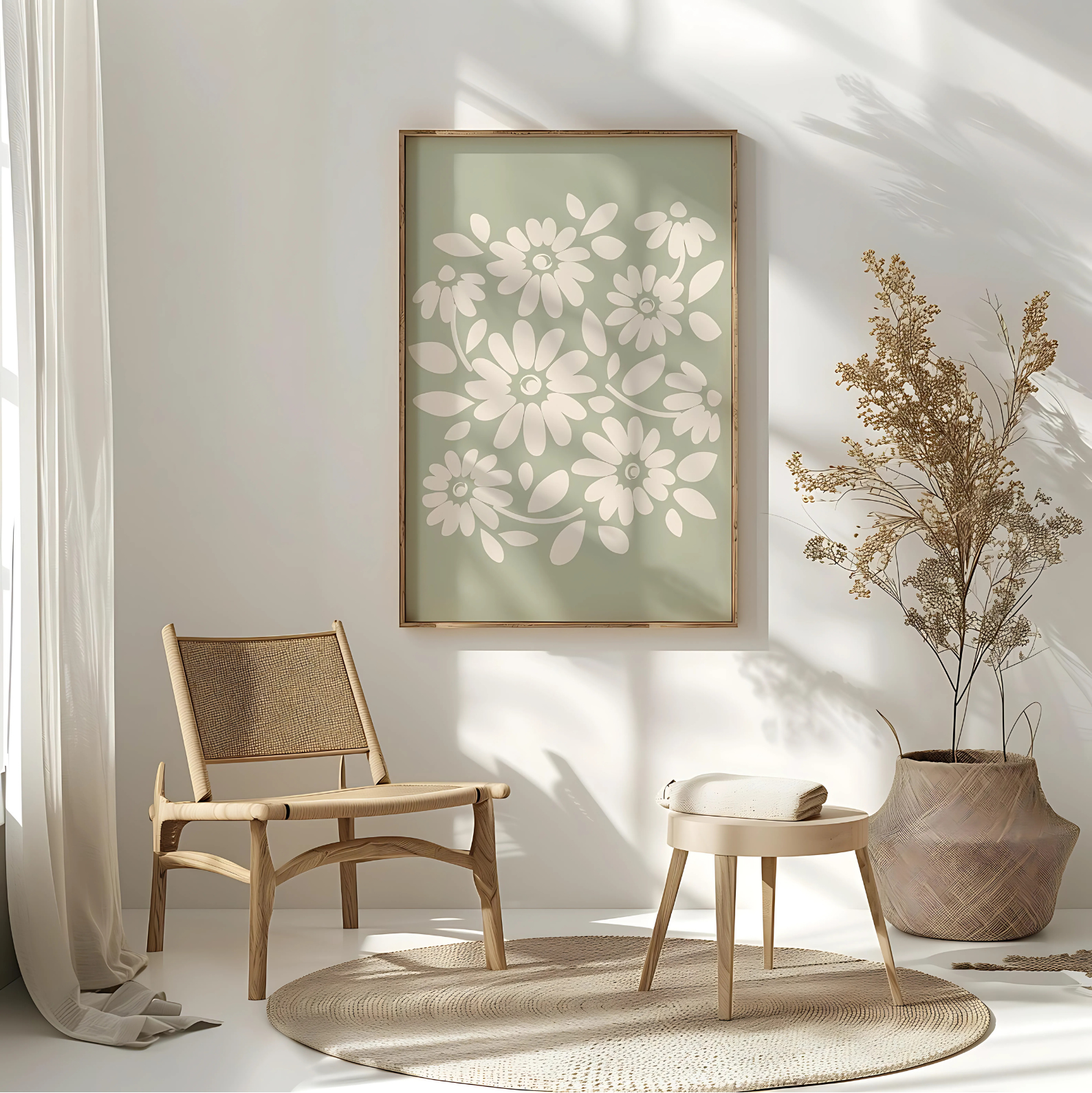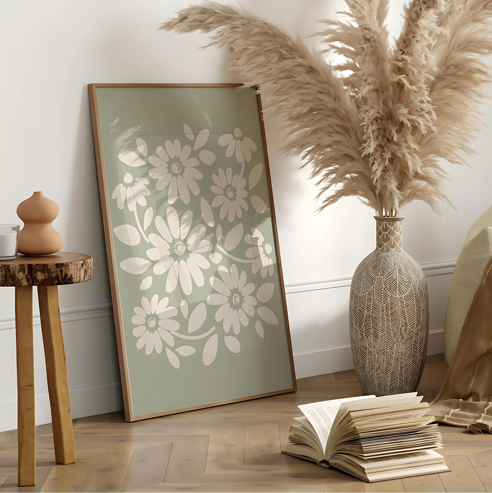 Cuadro Decorativo Botánico Flores Fondo Verde