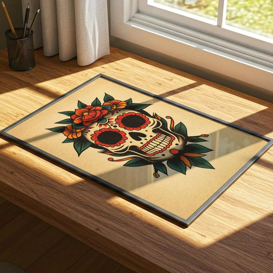 Cuadro Decorativo Tatuaje de calavera de azúcar