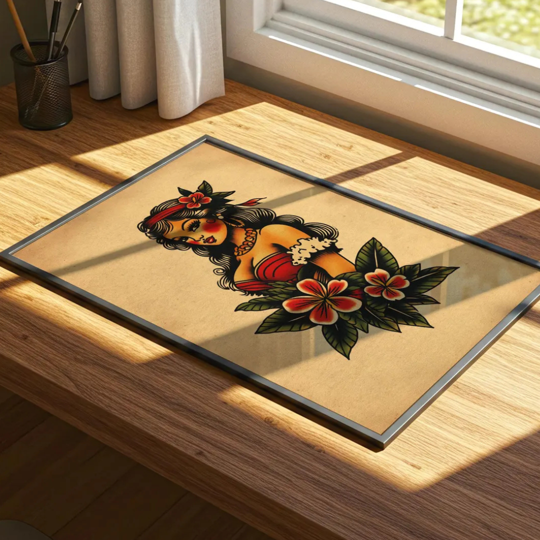 Cuadro Decorativo Tatuaje pin-up hawaiana
