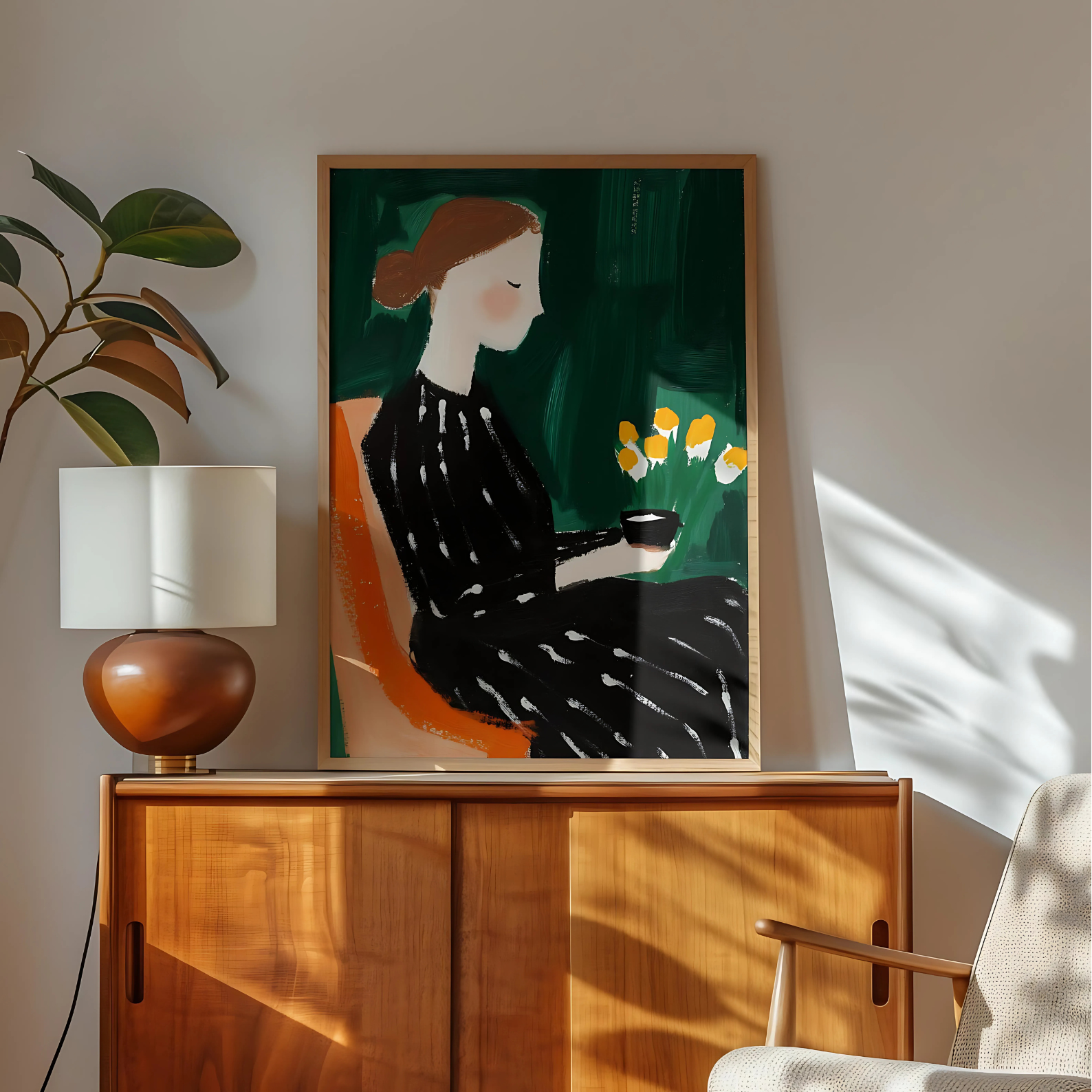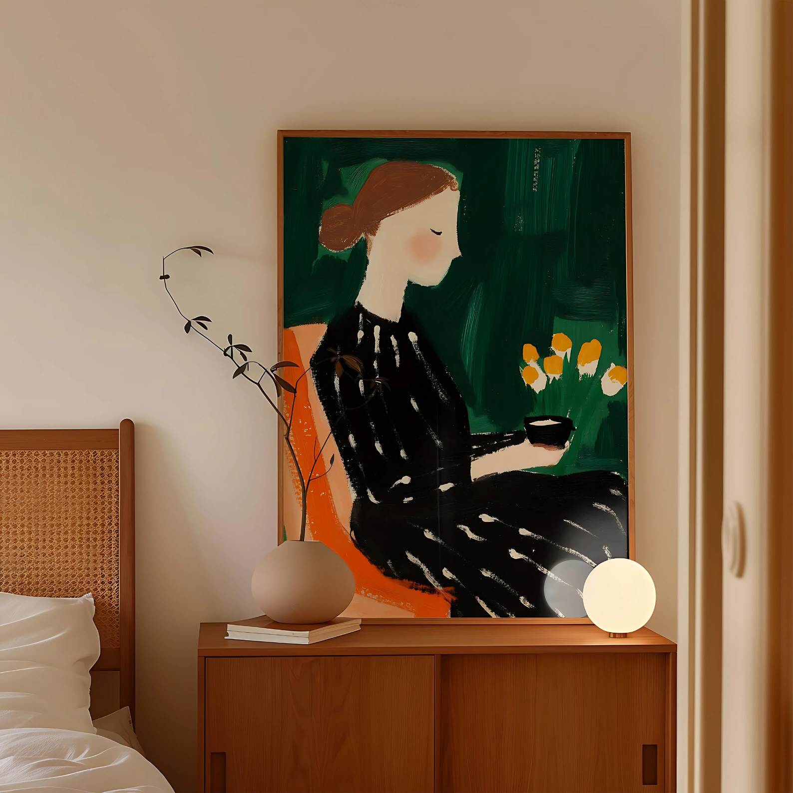 Cuadro Decorativo Ilustrativo Mujer Sentada Te