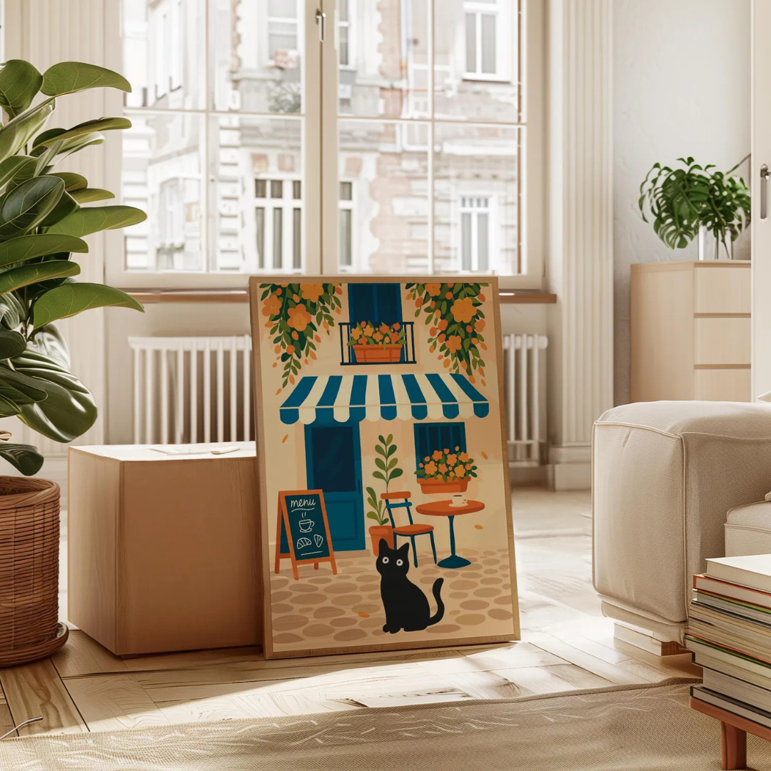 Cuadro gato, póster de gato negro en la calle