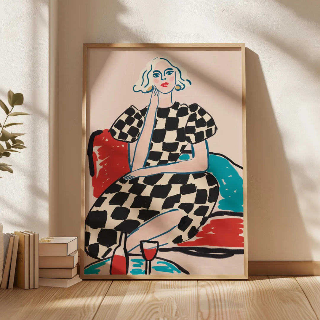 Cuadro moda con vestido a cuadros Mujer glamurosa retro