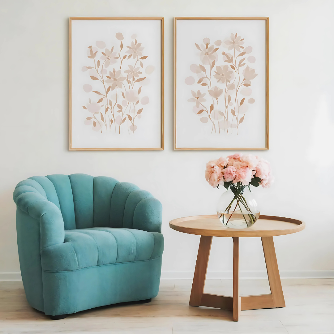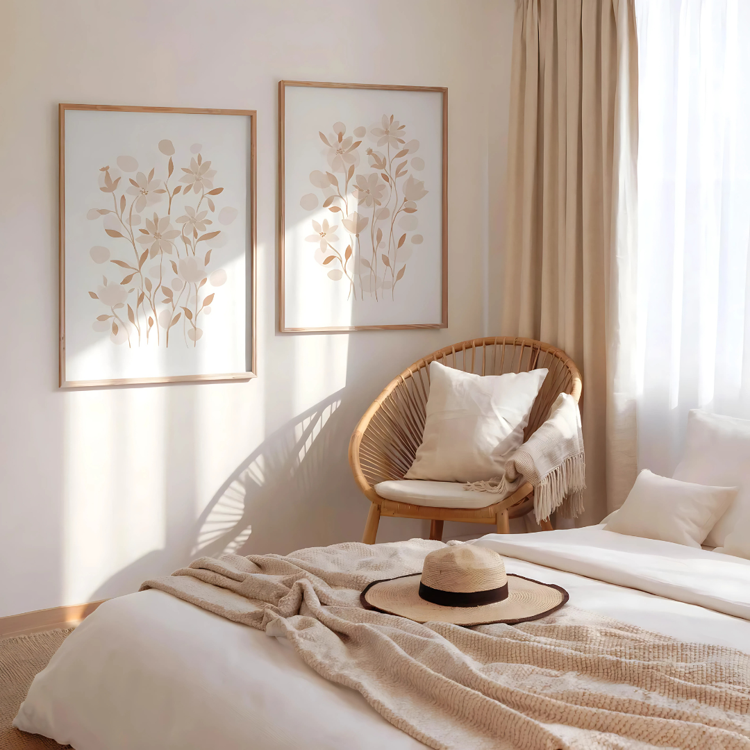 Set x2 Cuadros Diseños Botánico Flores Beige