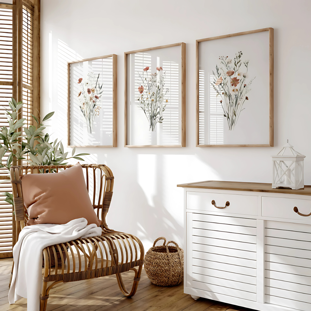 Set x3 Cuadros Decorativos flores silvestres de acuarela de verano