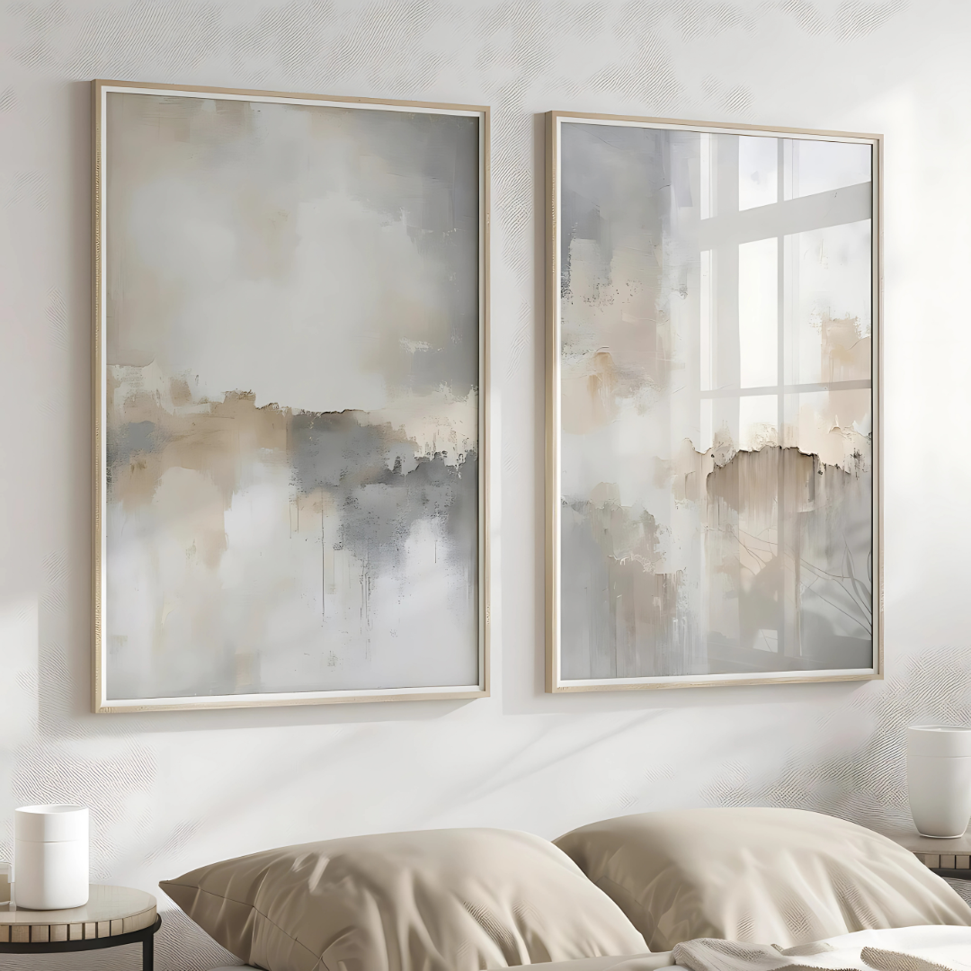 Set x2 Cuadros Diseños Abstractos Tonos De Grises Difuminados