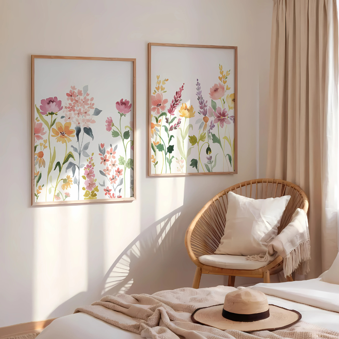 Set x2 Cuadros Diseños Botánico Flores Silvestres Coloridas