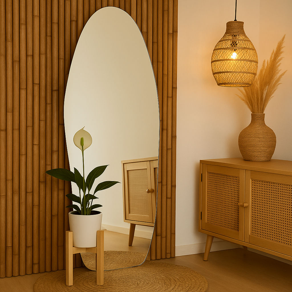 Cada espejo es una pieza única, hecha con dedicación por artesanos argentinos que priorizan la calidad y el diseño en cada detalle. Este espejo es más que un accesorio decorativo; es un elemento que eleva tus espacios.