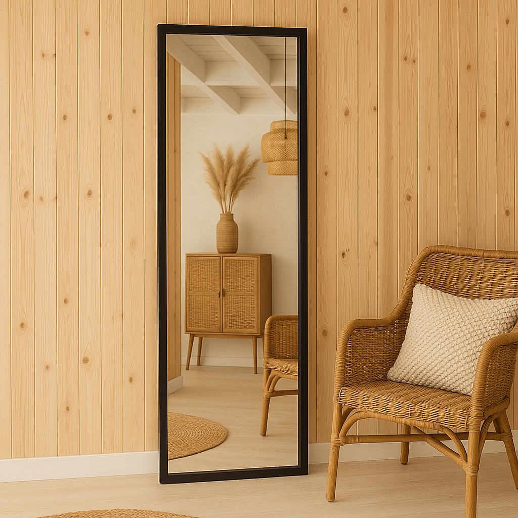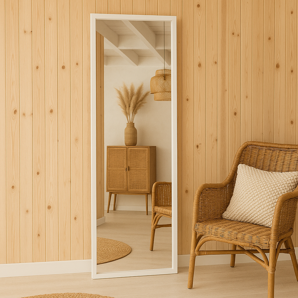 - Versatilidad en instalación: Podés usarlo como espejo de pie apoyado sobre la pared o colgarlo en ambas orientaciones.