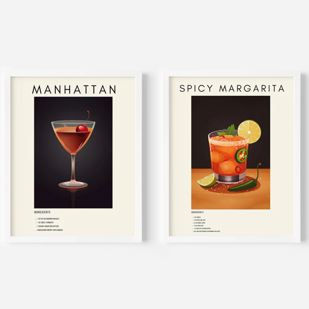 Set x2 Cuadros Decorativo Arte clásico de la pared de cócteles I