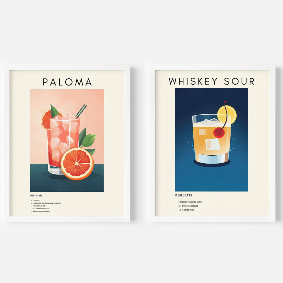 Set x2 Cuadros Decorativo Arte clásico de la pared de cócteles II
