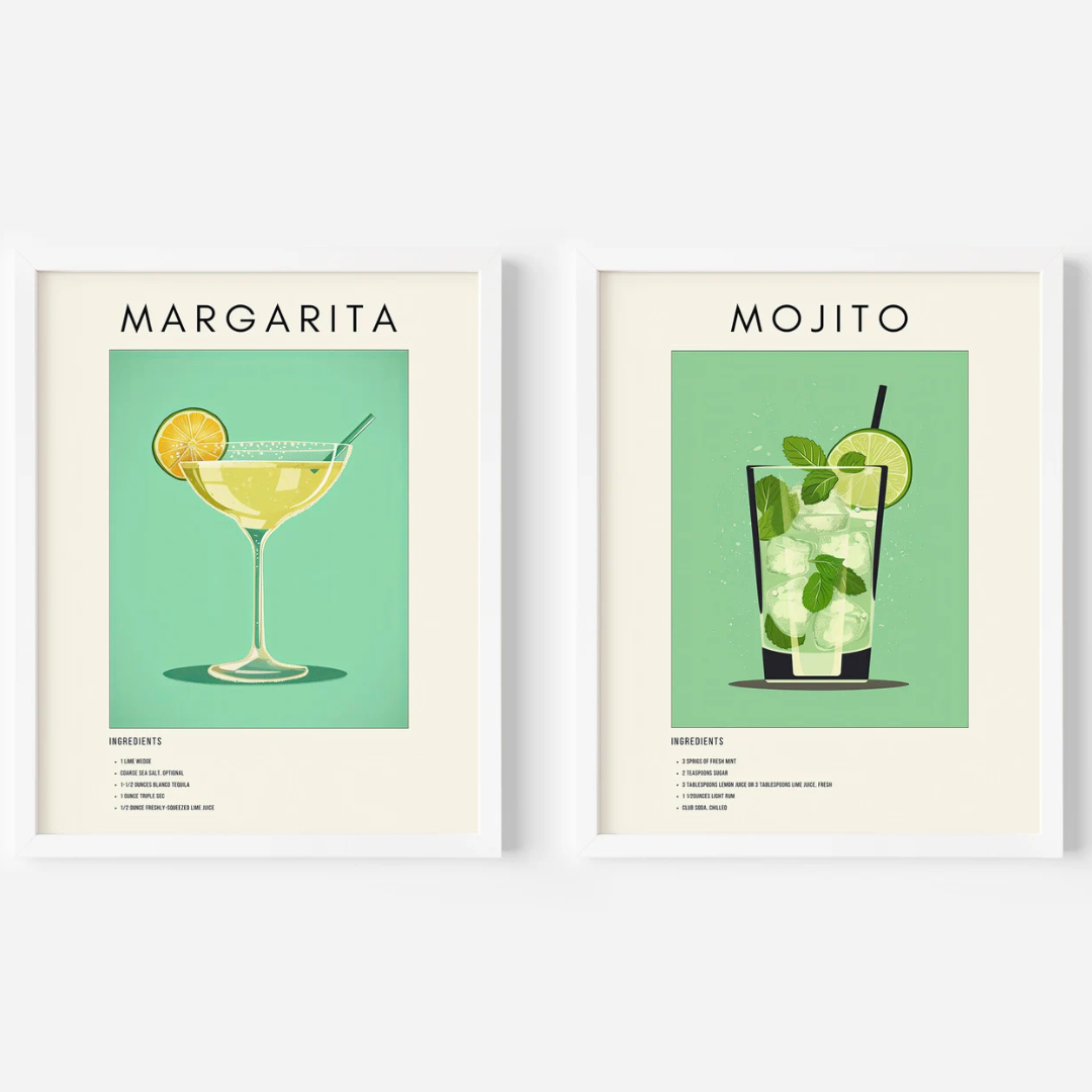 Set x2 Cuadros Decorativo Arte clásico de la pared de cócteles III