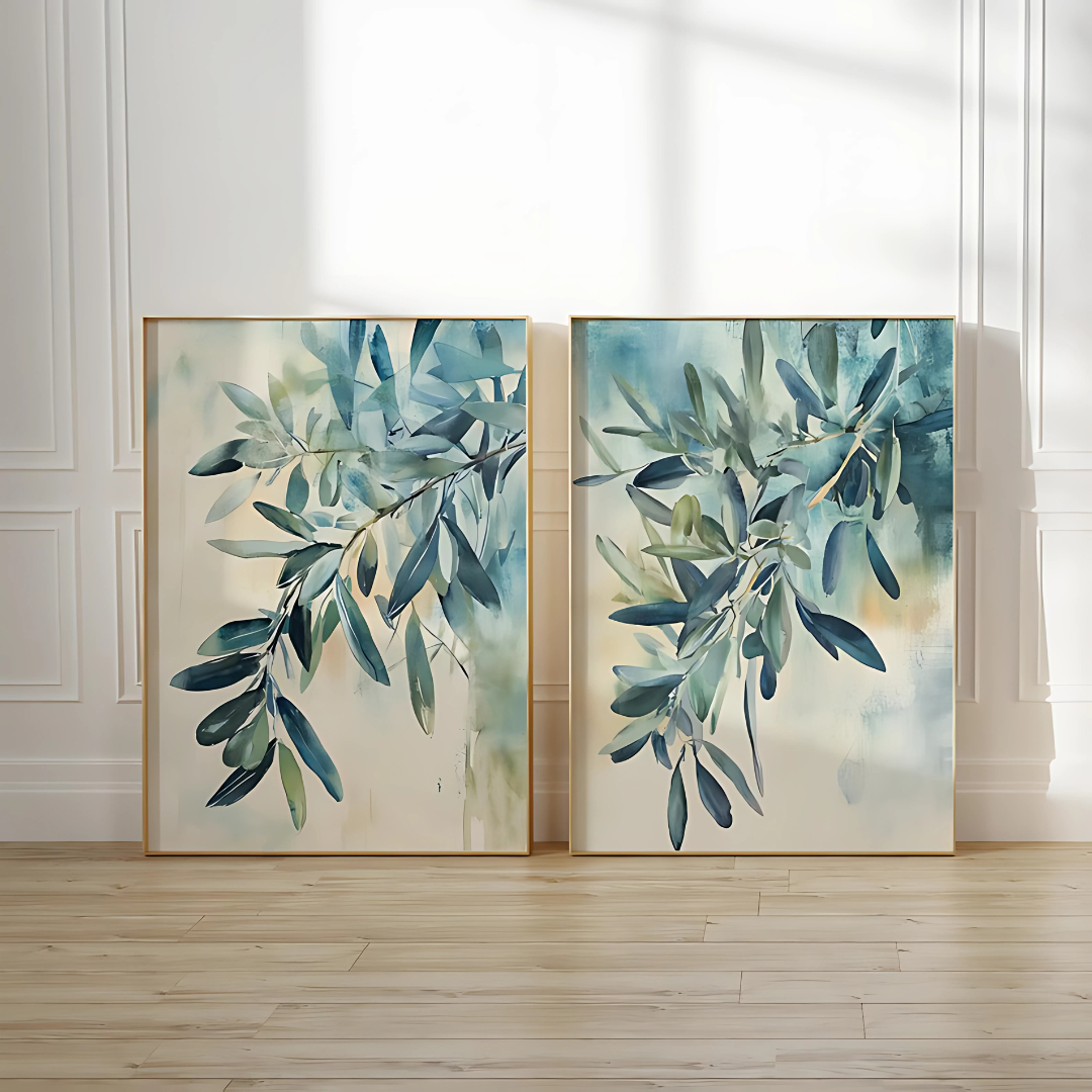 Set x2 Cuadros Decorativos Botanicas Olivo Verde