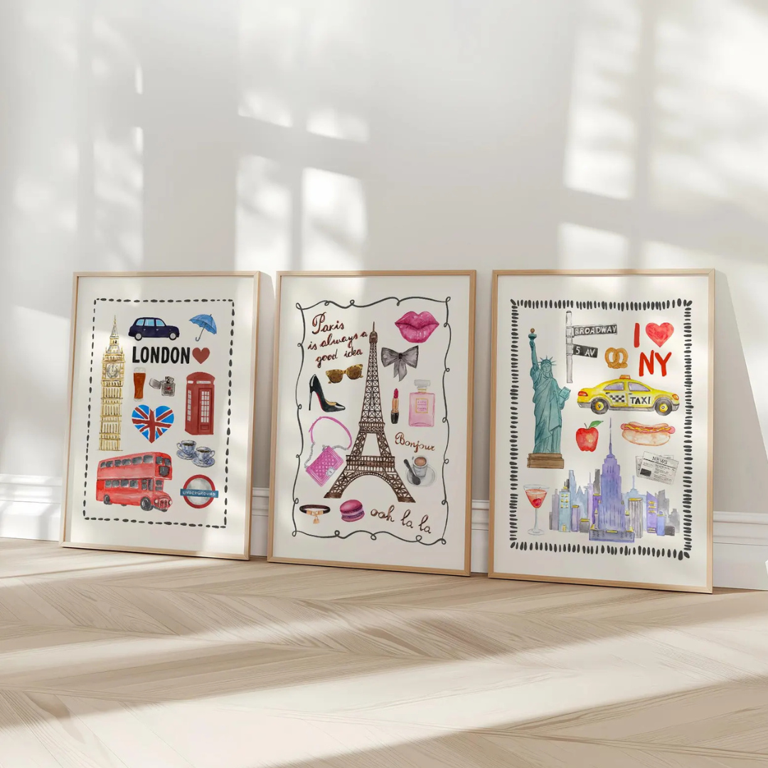 Set x3 Cuadros Abstractos Moda Nueva York