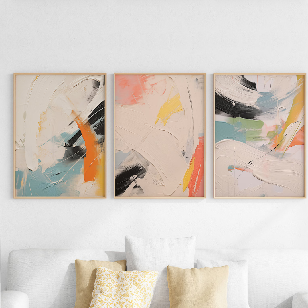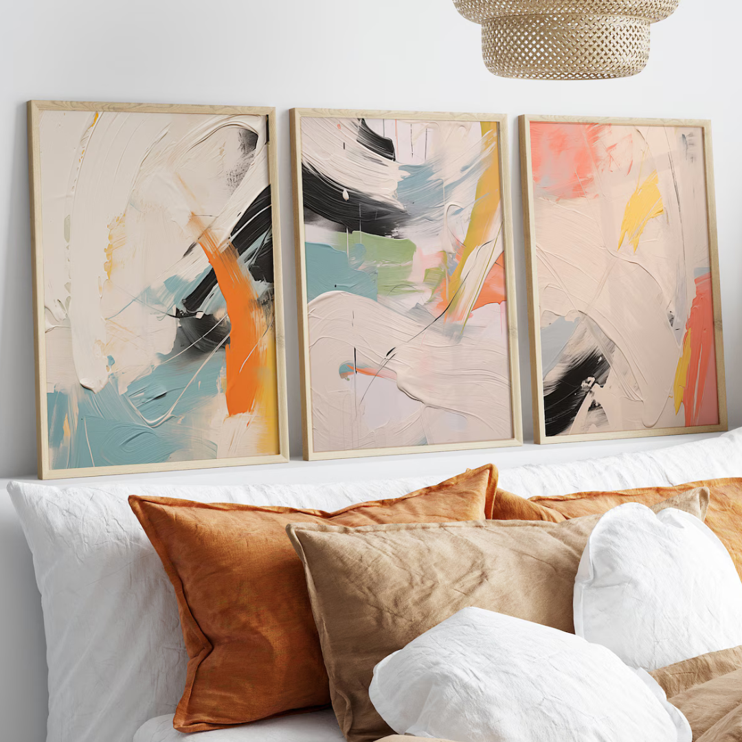 Set x3 Cuadros Abstractos, pinceladas de colores