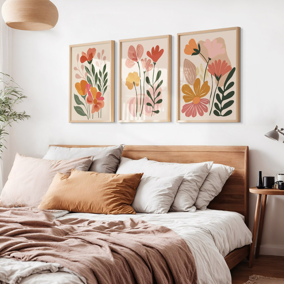 Set x3 Cuadros Decorativos Abstracto, Colores, Planta
