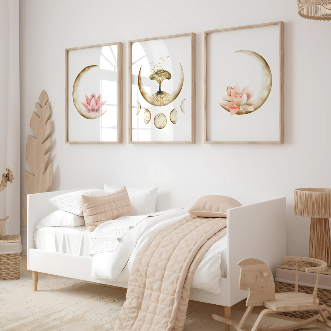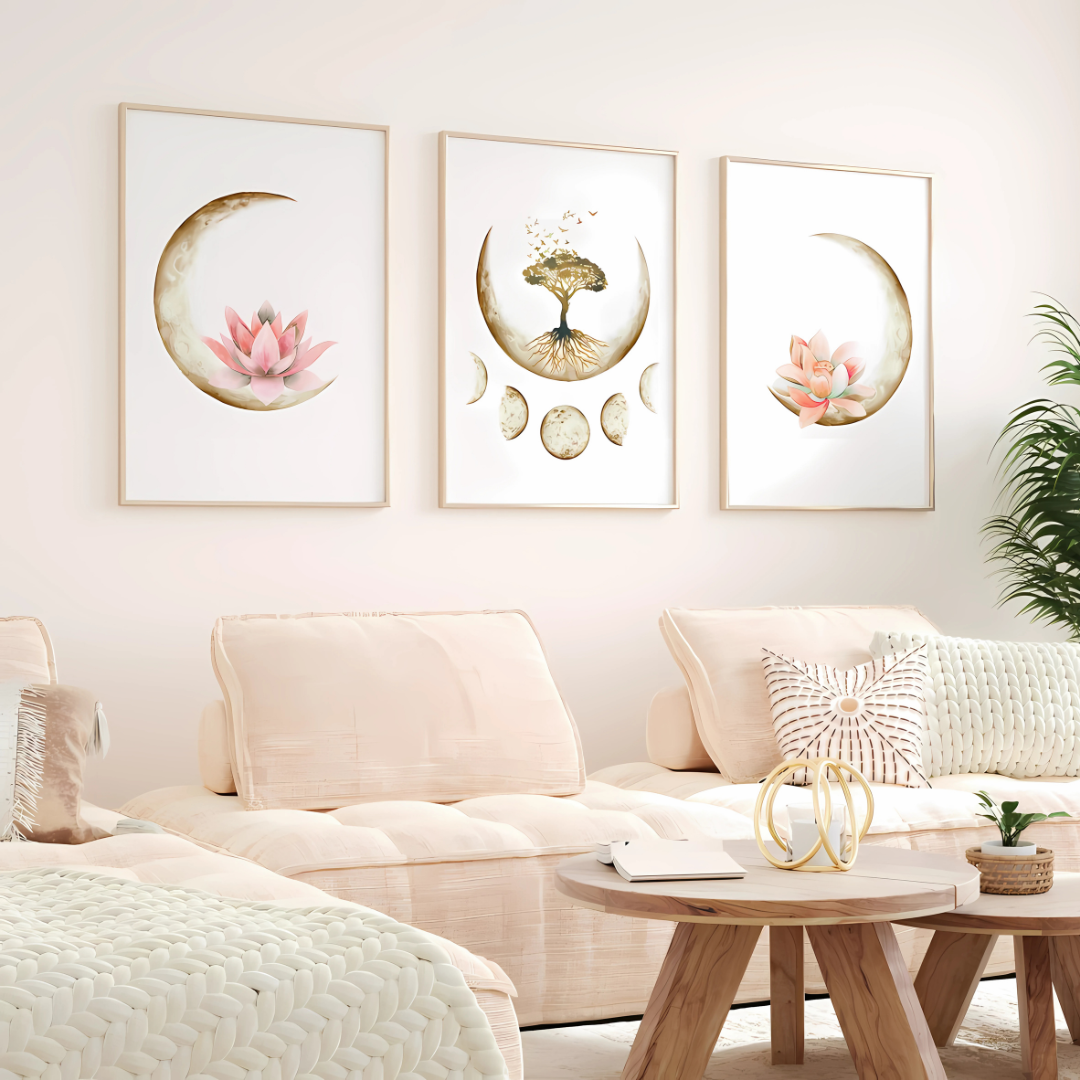 Set x3 Cuadros Abstractos, Árbol De La Vida, Flor de Loto