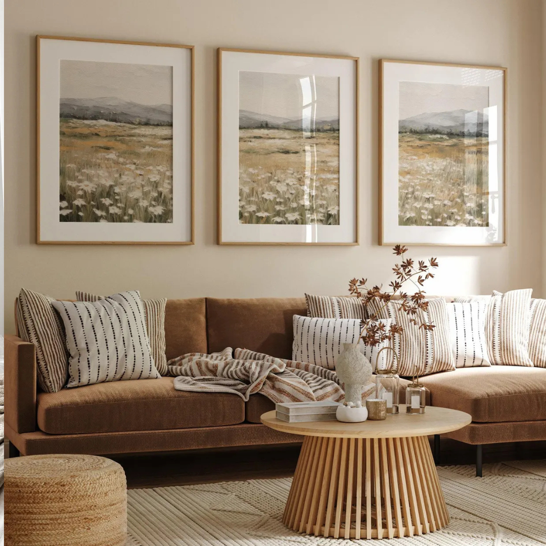 Set x3 Cuadros Decorativos flores silvestres en tonos neutros