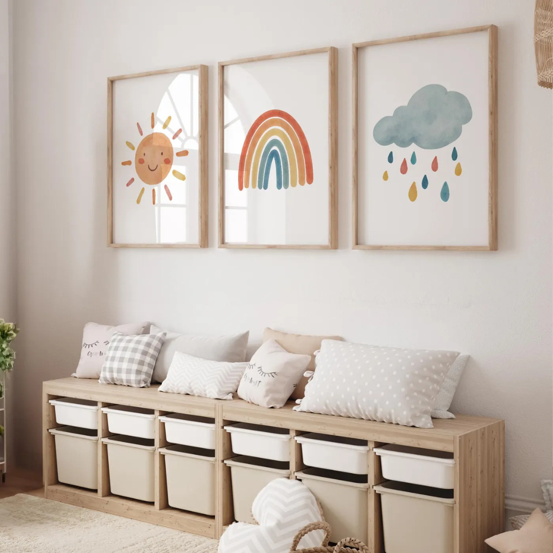 Set x3 Cuadros nubes de arcoíris y sol de colores