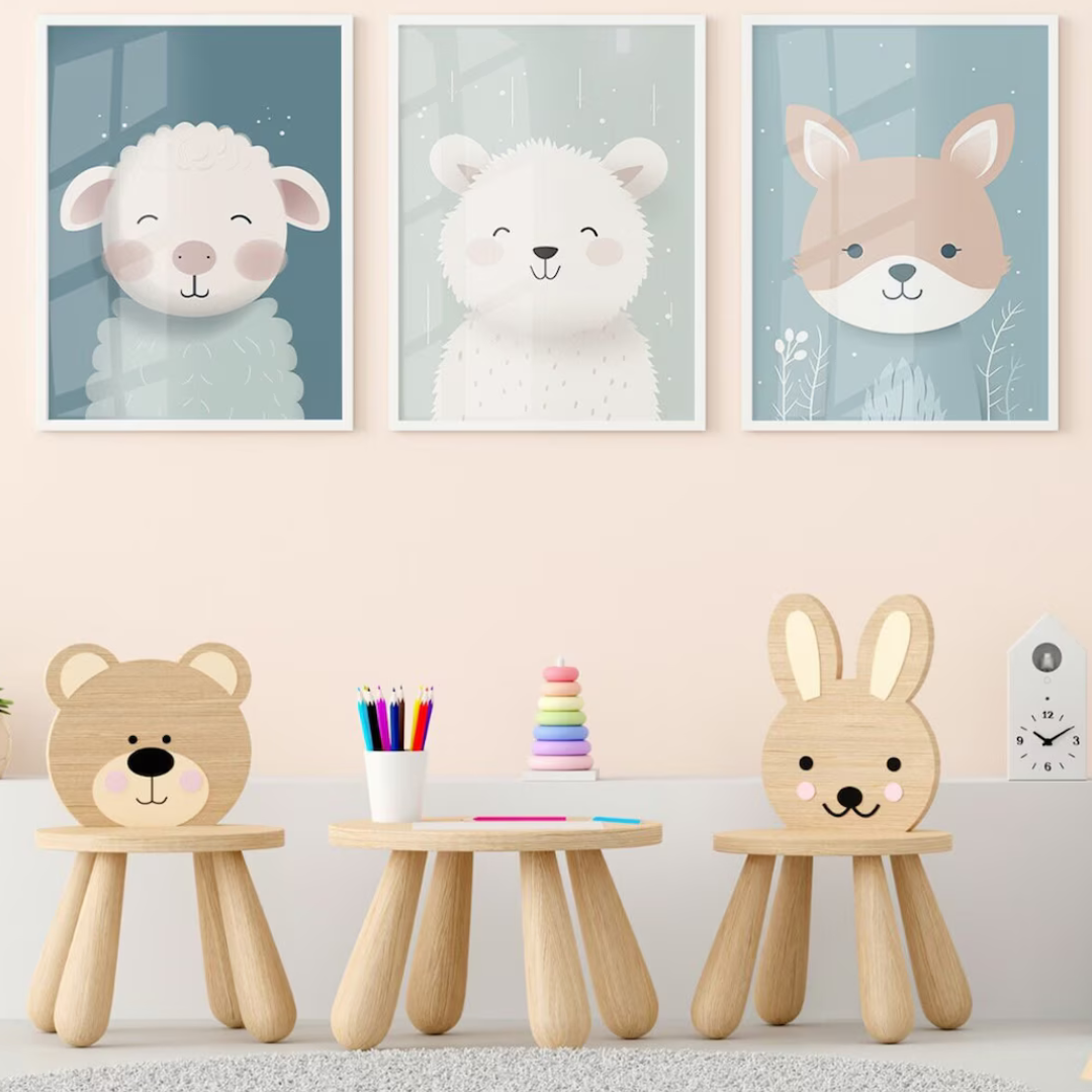 Set x3 Cuadros decoración de guardería de safari, animales de la jungla