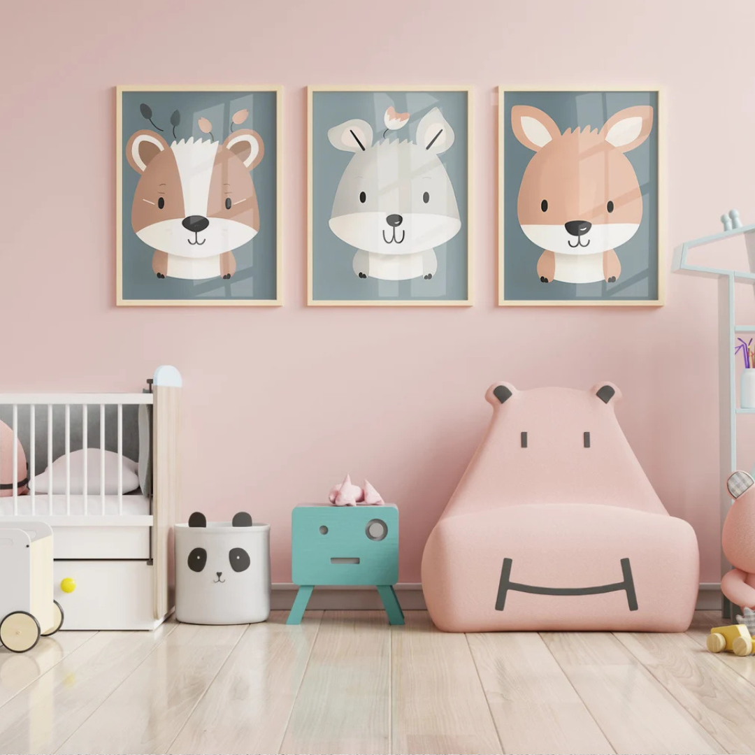 Set x3 Cuadros Decoración de guardería de safari, animales de la jungla